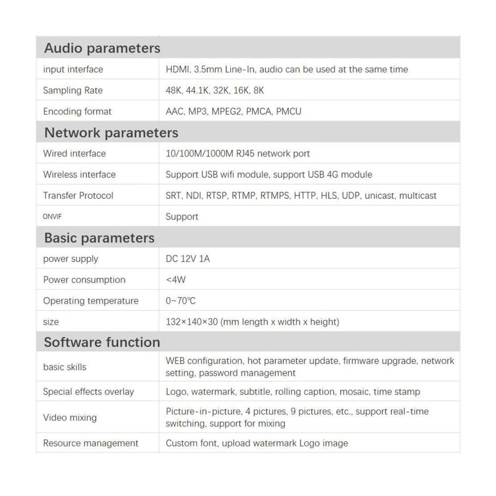 Maximale Bitrate: 40 Mbit / s; ENC1 Es ist nicht nur ein Encoder, sondern unterstützt gleichzeitig Decodierung, Regie, Mischen und andere Funktionen