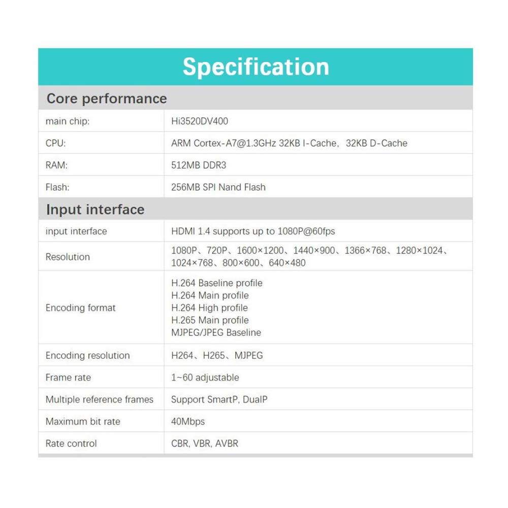 Unterstützt H.264-Codierung SmartP: HDMI 1.4 unterstützt bis zu 1080p @ 60fps-Eingabe und Multiprotokoll-Live-Übertragung, einschließlich RTSP / RTMP / HTTP / HLS / UDP / Unitcast / Multicasting