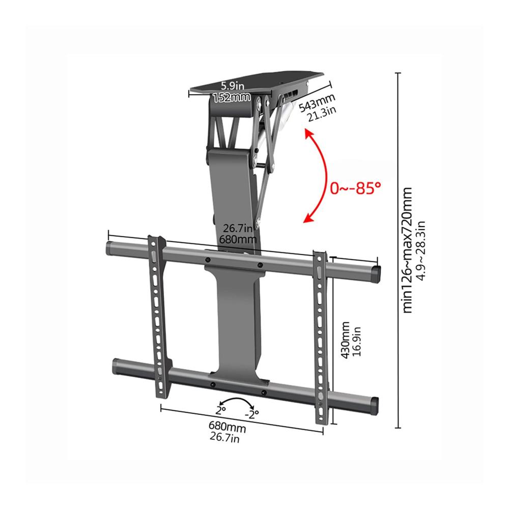 • Die elektrische TV-Halterung besteht aus hochwertigem, dickem, kaltgewalztem Stahl, ist fein und matt gesprüht, rostet nicht leicht, ist stark belastbar und hält bis zu 88 Pfund