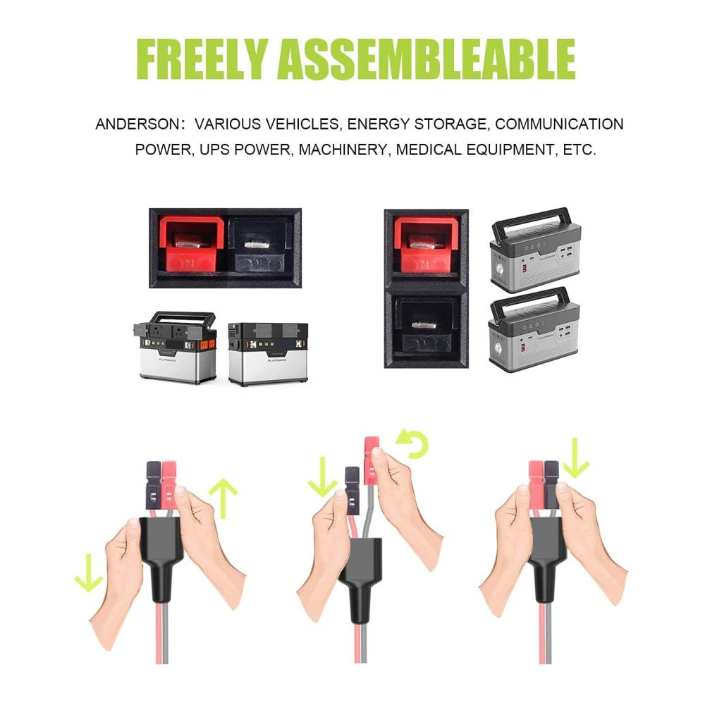 【DC5525-zu-Anderson-Kabel】: Y-Zweig-Typ Ein Ende ist DC5525 (5,5 mm x 2,5 mm), das andere Ende ist ein Anderson-Stecker, unterstützt Solarpanel (40-120 W, 13-18 V), perfekt zum Laden von tragbaren Solargeneratoren mit großer Kapazität Energieversorgung.