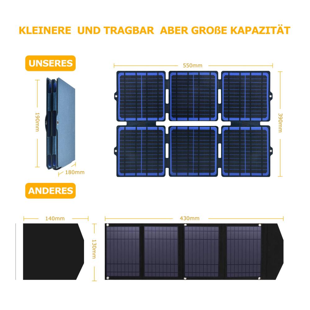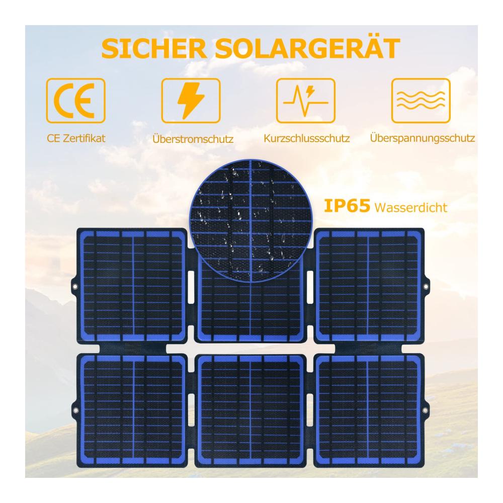 Enthaltene Komponenten : 1 * 30W faltbar solarpanel 1 * 1,5m Anschlusskabel 1 * 8 in1 Anschluss (für Generator) 1 * Benutzerhandbuch