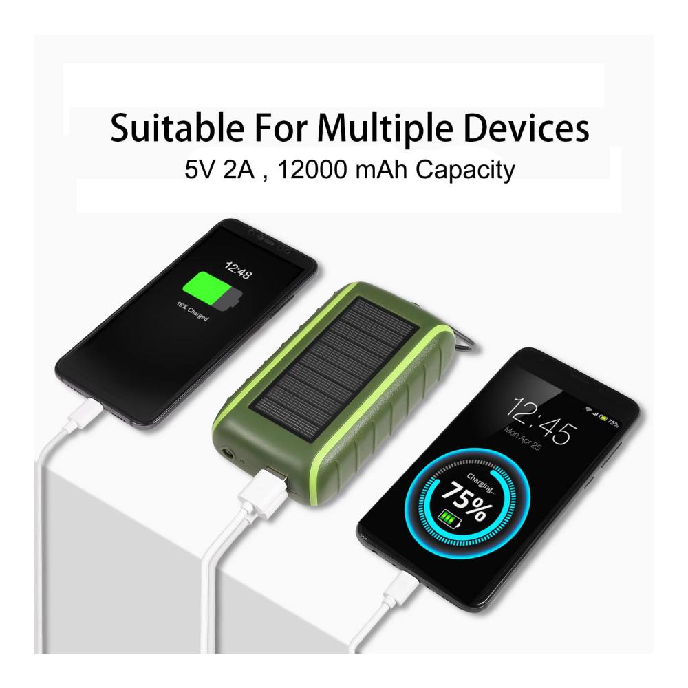 Erhalten Sie die ultimative Solarladegerät Powerbank für unterwegs! Unser Powerbank Solar Ladegerät 12000mAh bietet Ihnen umweltfreundliche Energie, wo immer Sie sind. Laden Sie Ihre Geräte mühelos auf und bleiben Sie immer verbunden. Dank des leichten Designs und der Wasserbeständigkeit ist es perfekt für Reisen und Outdoor-Abenteuer geeignet. Nutzen Sie die Sonnenenergie und die Handkurbel-Funktion, um Ihr Telefon aufzuladen, und verwenden Sie die LED-Lichtfunktion, wenn Sie Licht benötigen. Bestellen Sie jetzt und seien Sie für jede Situation gerüstet!