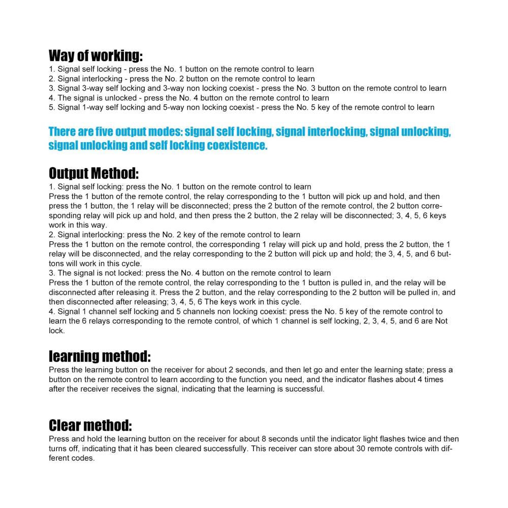 Hervorragende Leistung: Der Fernbedienungsschalter ist ein drahtloser Fernbedienungsschalter (Empfänger) mit Lerncode, ein 6-Kanal-Funkfernbedienungsschalter mit 6 Relais, stabil und zuverlässig, mit hoher Empfangsempfindlichkeit.
