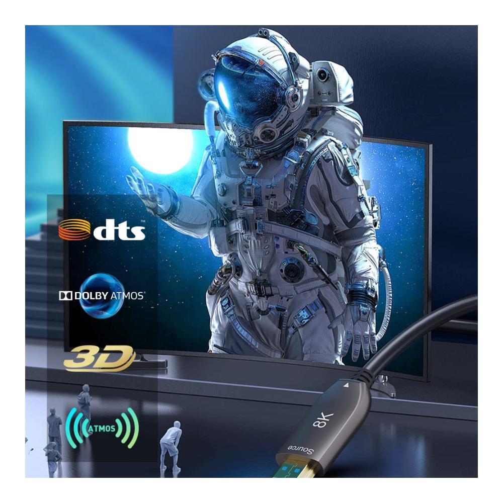 【Werden Sie Zeuge der wahren Schönheit aller Dinge】Dieses HDMI 2.1Glasfaser Kabel kann audiovisuelle Effekte wie Dolby Vision, Dolby Atmos, HDR, 3D, HDCP 2.2, RTX und eARC perfekt wiedergeben. Dieses HDMI cable 120 Hz mit einer Bandbreite von 48Gbps kann die Auflösung bis zu 8K und erreichen Sie die Bildwiederholfrequenz 8k @ 60Hz, 4k @ 120Hz. Test praktisch RTX 3090 Grafikkarte und LG TV SSCR kann 4096 * 2160 120Hz 12 Bit YCbCr420 erreichen.