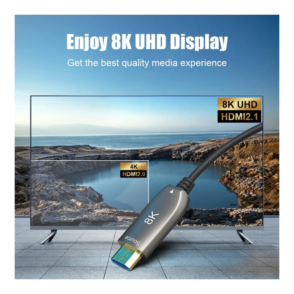 Unser 8K HDMI 2.1 Glasfaserkabel (15m) bietet Ihnen ultimative Leistung und Kompatibilität für ein unvergleichliches audiovisuelles Erlebnis. Dank seiner hochentwickelten Technologie und vergoldeten Grenzfläche gewährleistet es eine herausragende Bild- und Tonqualität. Genießen Sie Dolby Vision, Dolby Atmos, HDR, 3D und mehr mit einer Bandbreite von 48Gbps. Kompatibel mit einer Vielzahl von Geräten, einschließlich PS5, Xbox Series X und mehr.