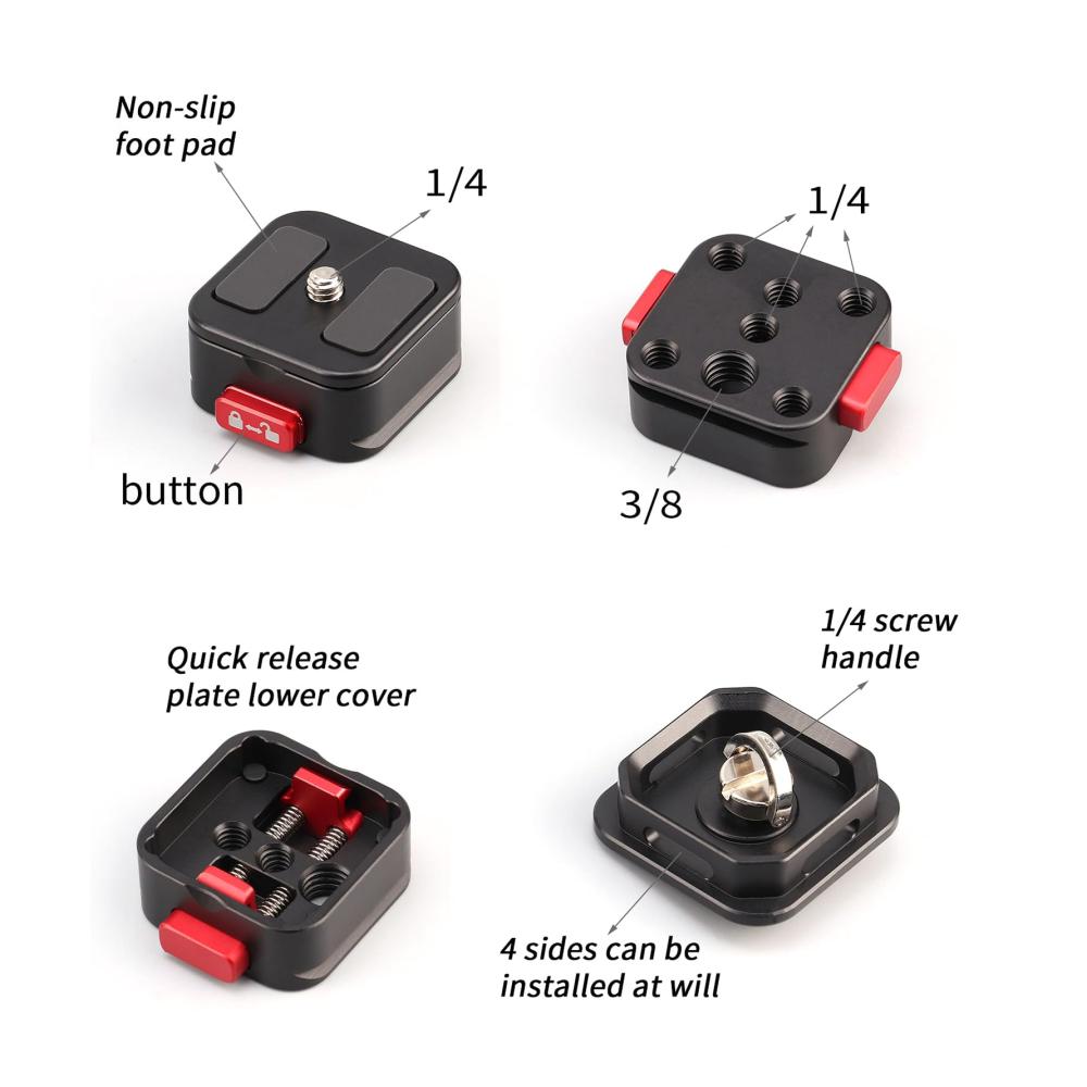 • Holen Sie sich ultimative Stabilität mit unserem Schnellwechselplatte Stativ-QR-Platte Kameramontage-Adapter. Die perfekte Schnelleinrichtung aus Aluminiumlegierung mit 1/4-Zoll-Schraube für spiegellose DSLR-Kamera und Stativ-Gimbal-Stabilisator.