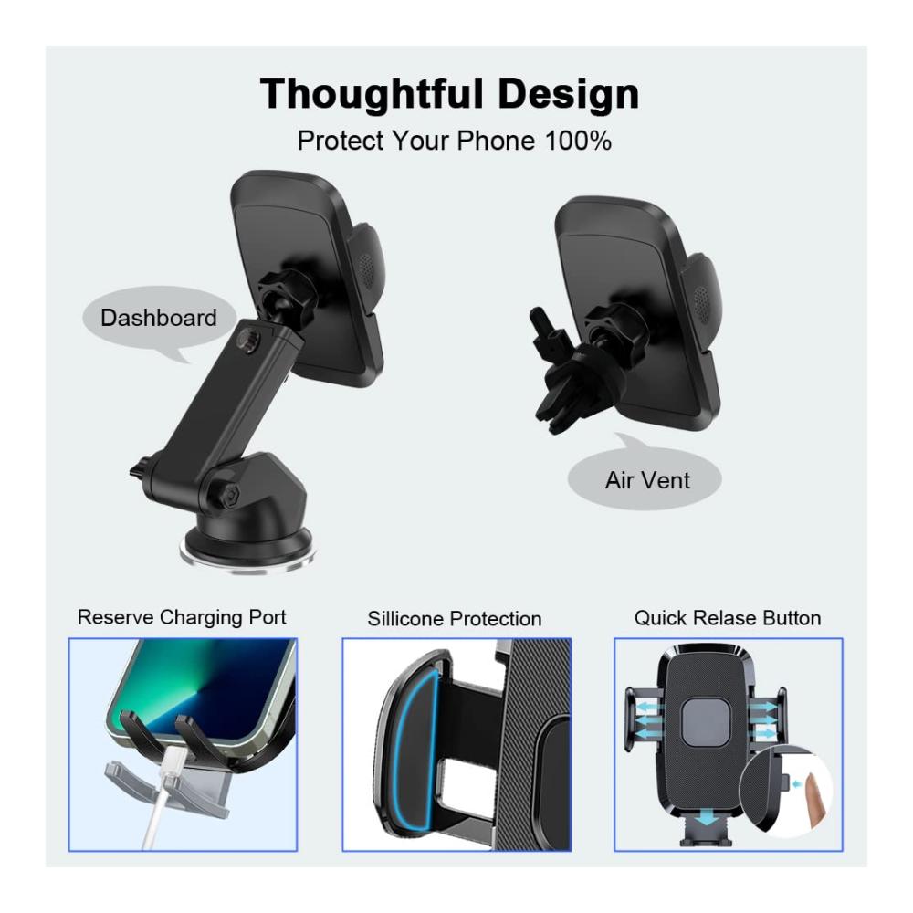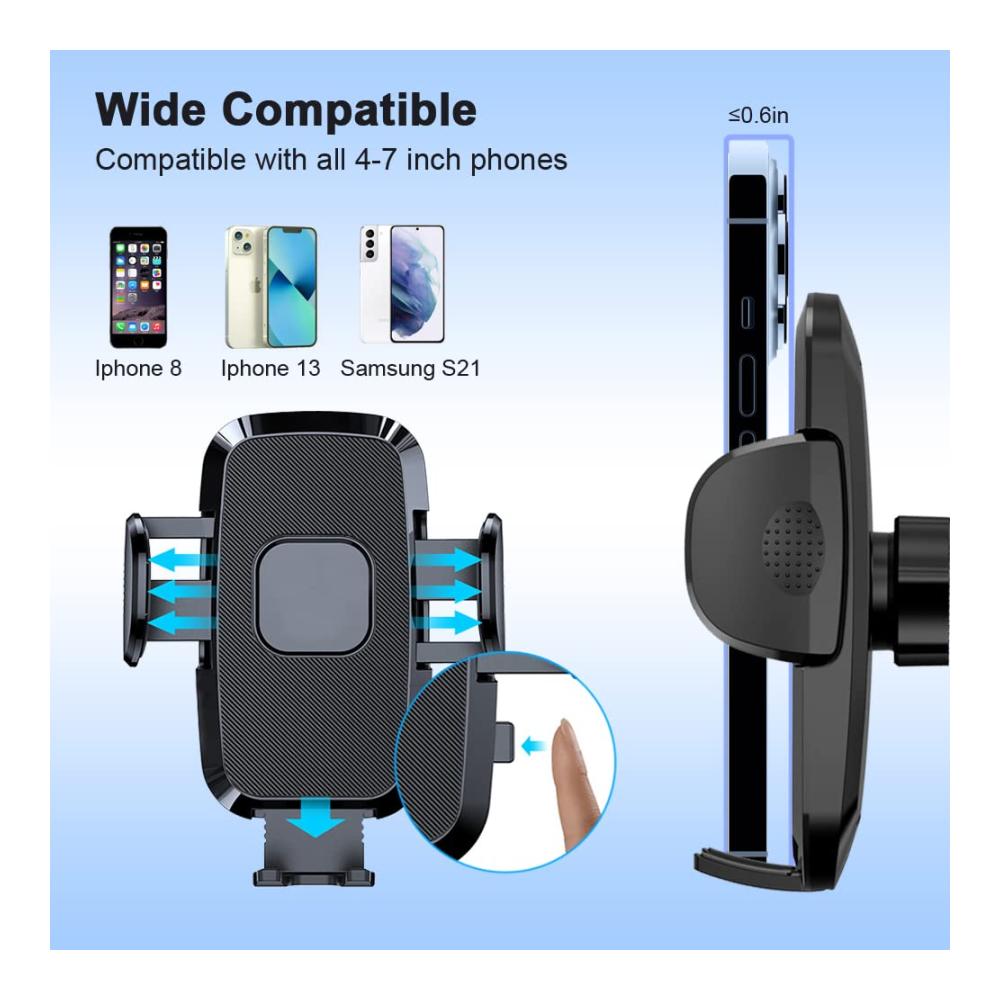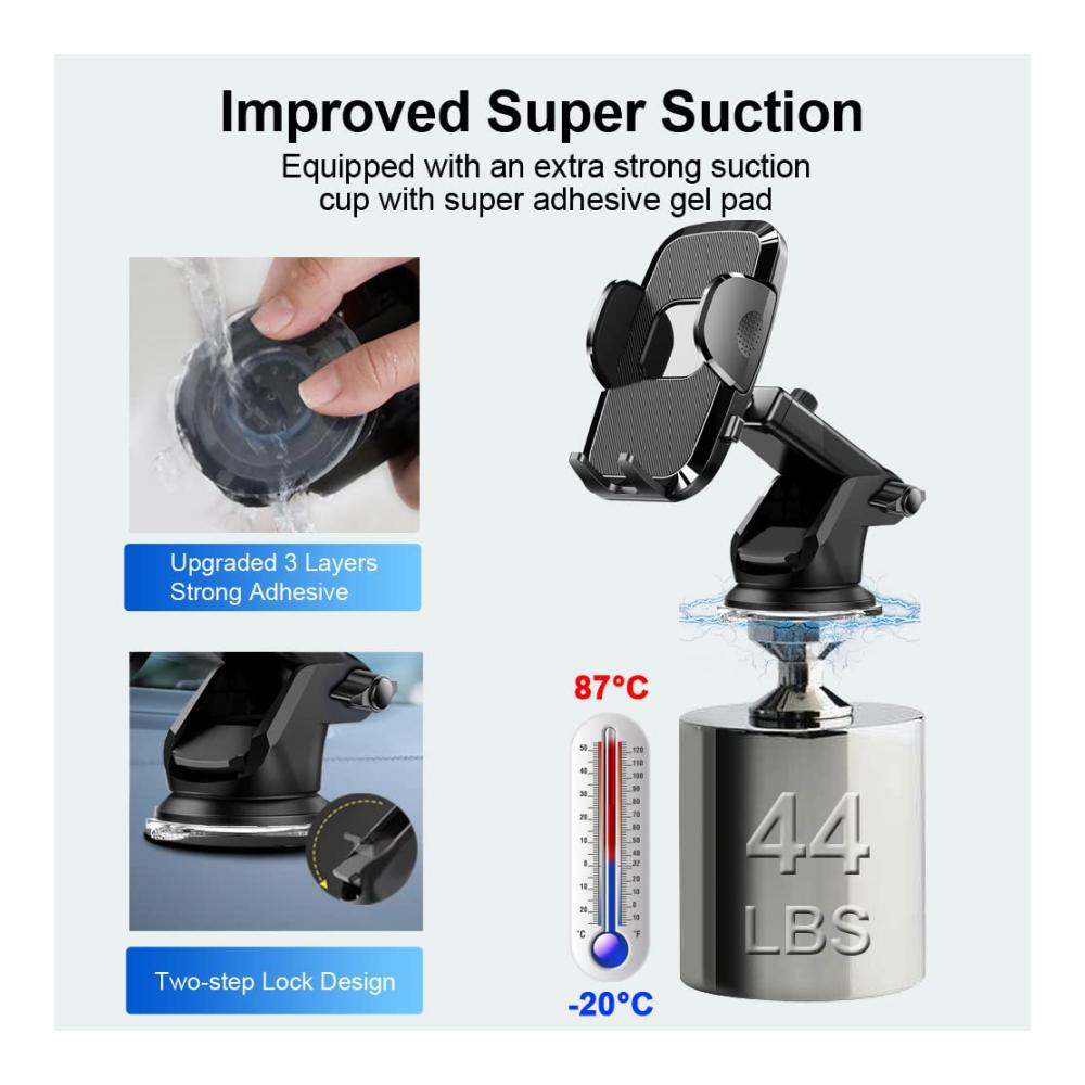 - Dieser Telefonhalter für Autos, hat einen 2-Schritt-Verriegelungsmechanismus, Sie können die Befestigung der Halterung für die Befestigung auf ebenen oder unebenen Oberflächen wechseln.