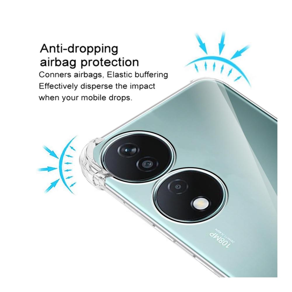 Stoßschutz: Verstärkte Silikonairbags an 4 Ecken reduzieren Schäden an Ihrem Telefon durch versehentliches Herunterfallen und bieten zusätzlichen Stoßschutz für Ihren Honor X7b. Das Design mit erhöhter Kante schützt Bildschirm und Kamera vor Kratzern.
