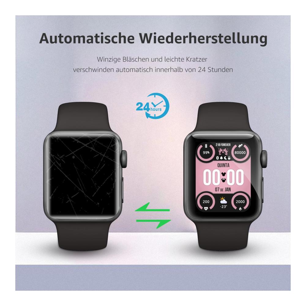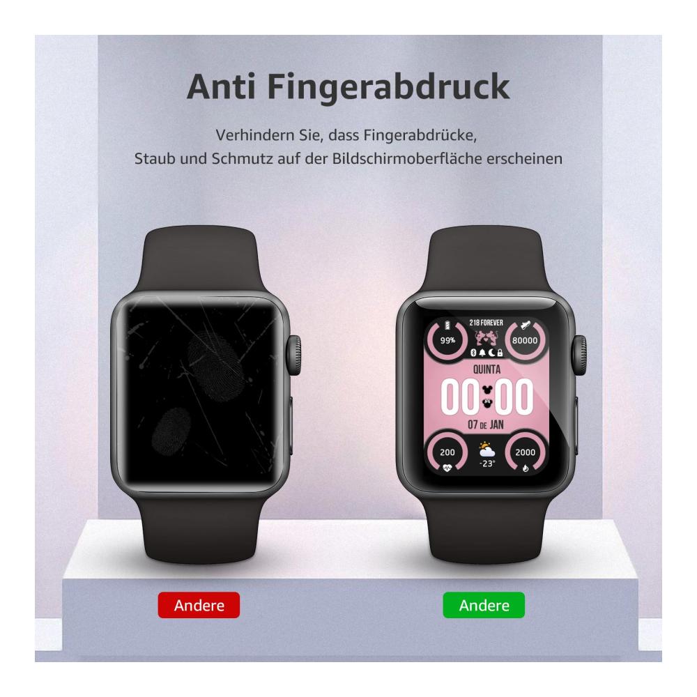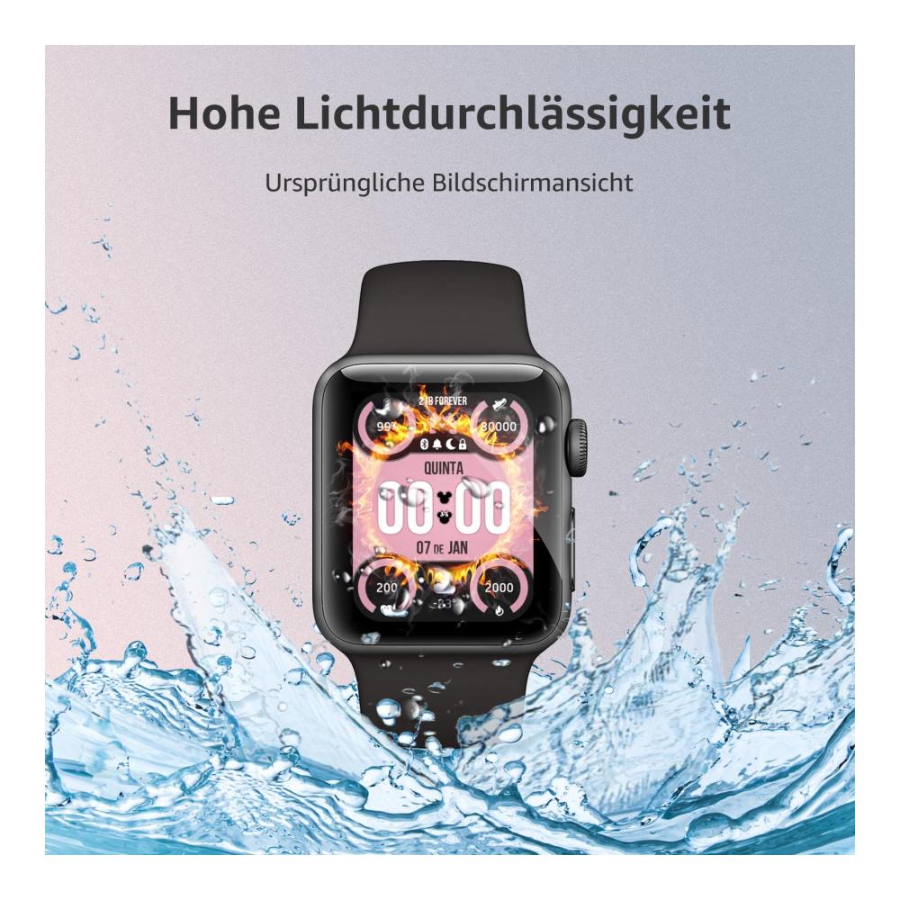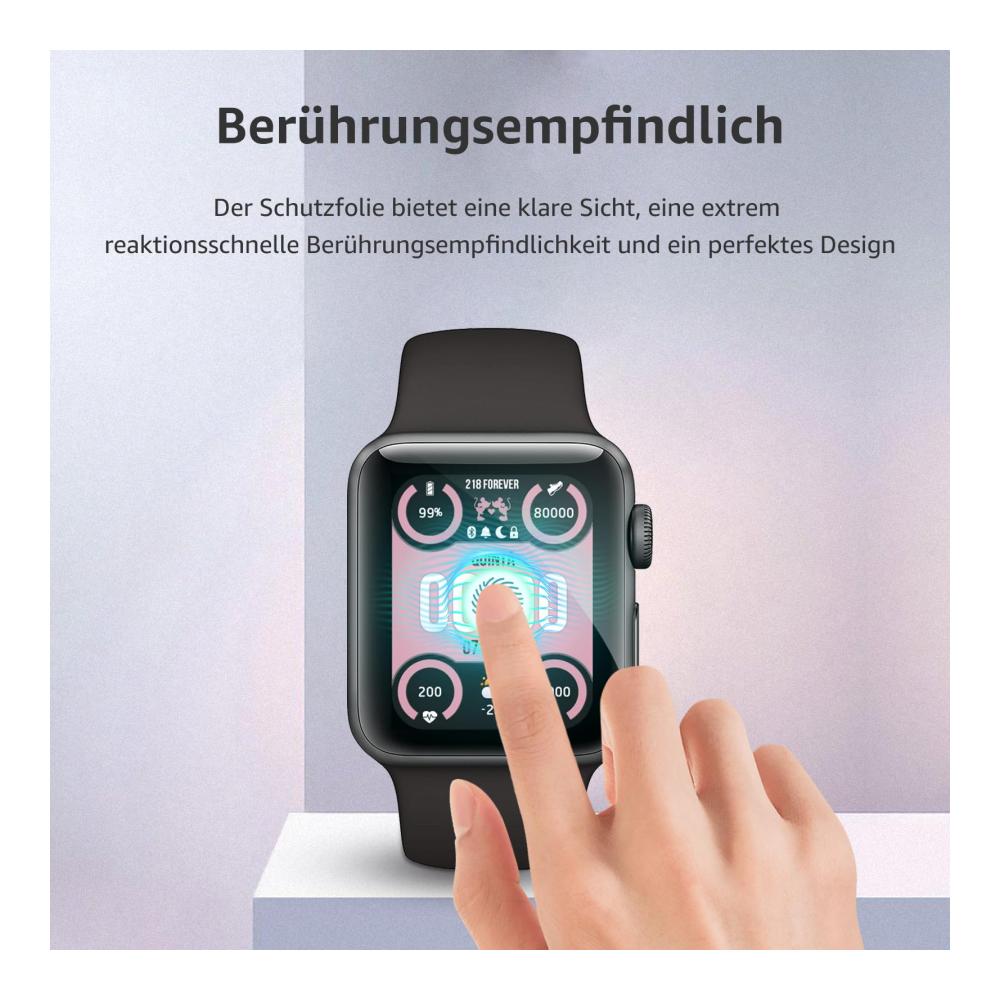 – **Hohe Auflösung:** Die Schutzfolie gewährleistet eine klare Sicht und behält dabei die Touchscreen-Empfindlichkeit Ihrer Apple Watch bei.