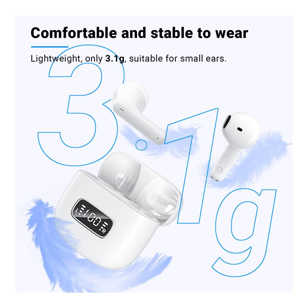 Bluetooth Kopfhörer für iOS und Android in Weiß: Unsere stilvollen In-Ear-Ohrhörer sind perfekt für iOS- und Android-Geräte geeignet. Das elegante Weiß verleiht ihnen eine zeitlose Ästhetik.