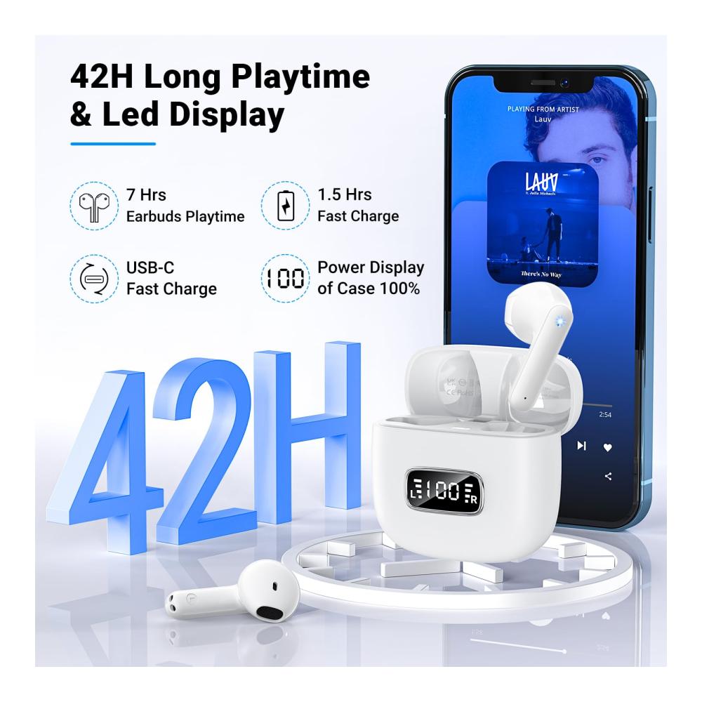 LED Anzeige und Lange Spielzeit: Die integrierte LED-Anzeige informiert Sie jederzeit über den Ladestatus Ihrer Kopfhörer. Mit beeindruckenden 42 Stunden Spielzeit bleiben Sie den ganzen Tag über kabellos verbunden. Ideal für unterwegs, im Büro oder beim Sport.
