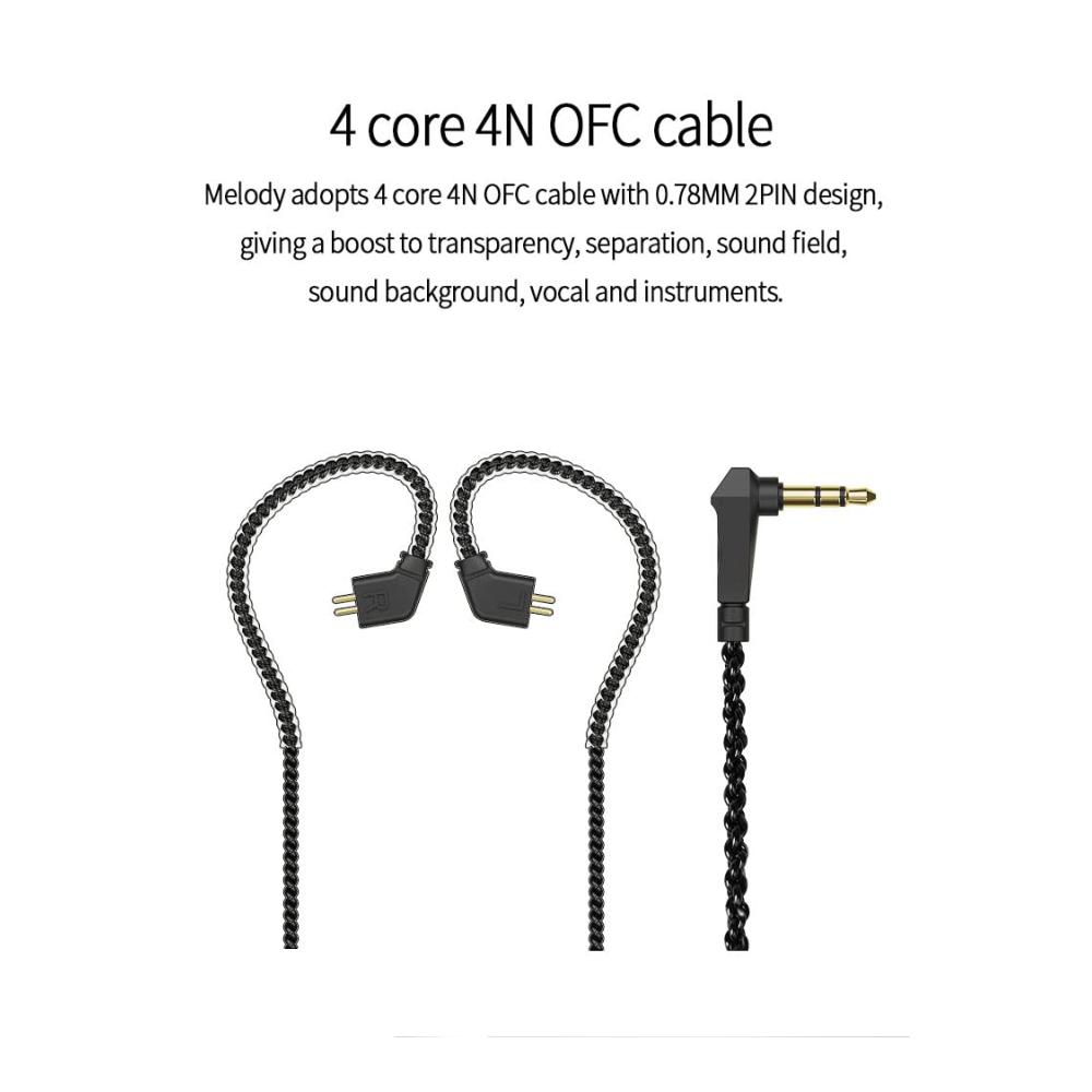 【Leichtes Gehäusedesign】-CCZ Melody-Headset verwendet leichte Komponenten. Ein einzelner Ohrhörer wiegt nur 2,3 g, ist leicht zu tragen und entlastet die Ohren. Melody verwendet ein 4-adriges 4N-OFC-Kabel mit einem 0,78-MM-2-PIN-Design, das Transparenz, Trennung, Schallfeld, Klanghintergrund, Gesang und Instrumente verbessert.