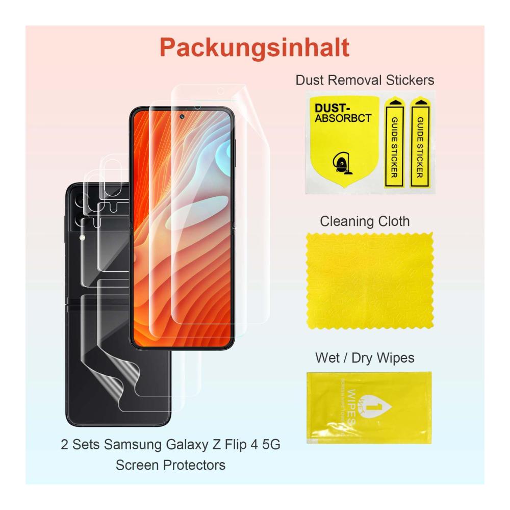 💐Die exquisite Geschenkbox enthält: ⚡ 💐2 * Samsung Galaxy Z Flip 4 5G TPU Displayschutzfolie 💐2 * Samsung Galaxy Z Flip 4 5G TPU-Rückseitenfolie 💐2 * Alkoholtuch 💐2 * Mikrofasertuch 💐2 * Staubdichte Aufkleber