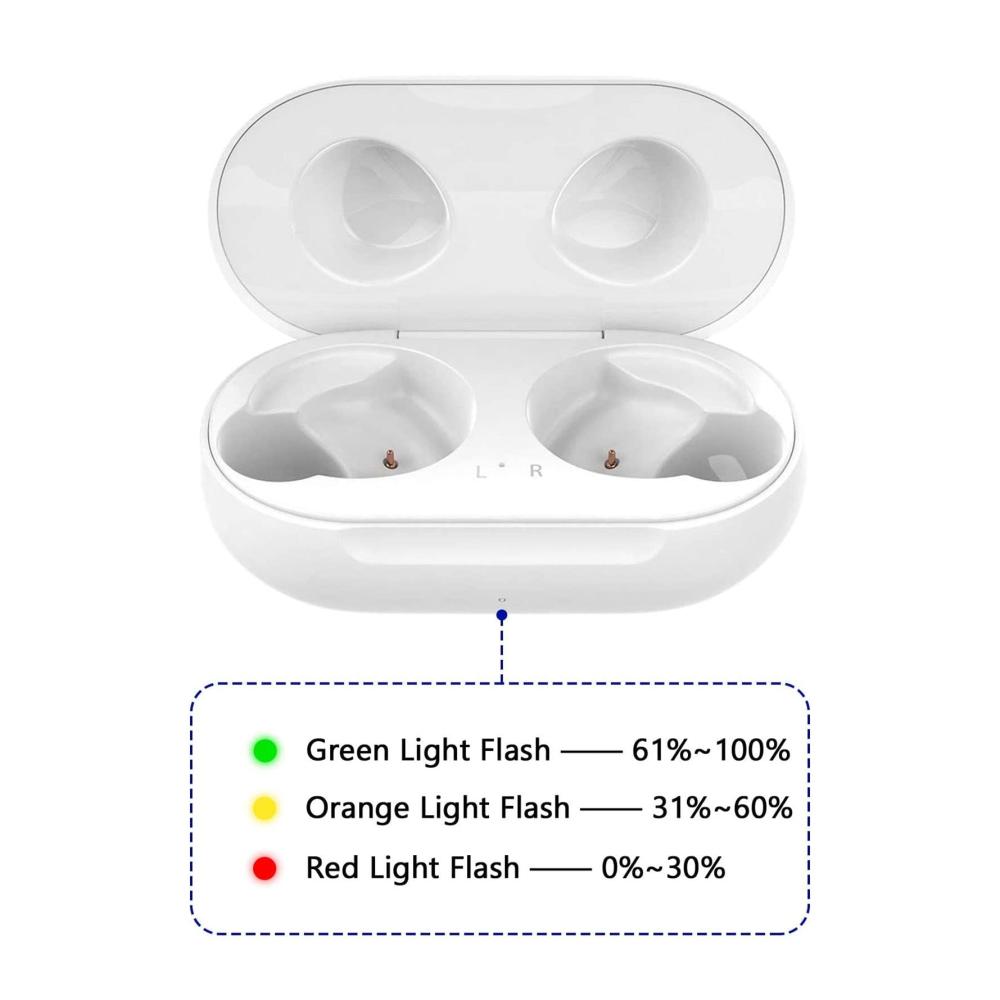LED-ANZEIGE: Das Ersatz-Ladegerät enthält einen 300-mAh-Akku, der ausreicht, um Ihre Ohrhörer 2 Mal hintereinander aufzuladen. Die LED-Anzeige zeigt den Prozentsatz der Batterieladung an.