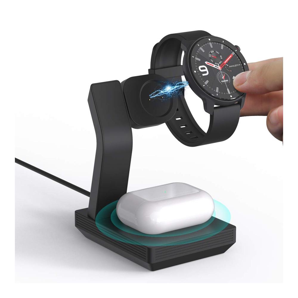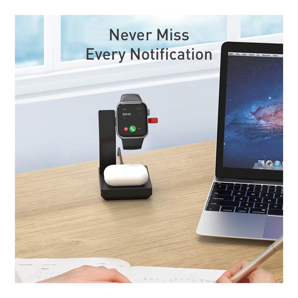 【Bequemlichkeit von zwei in einem】Die brandneue Kollokation bietet ein frisches Ladeerlebnis: Der kabellose Ladeständer verbindet sich mit dem Ladehalter der Uhr. Der Schreibtisch wird nicht mit einem Ladekabel belegt. Kein zusätzliches Ladekabel nötig, laden Sie Ihr Telefon und Ihre Uhr oder Kopfhörer gleichzeitig. (Hinweis: Das Telefon / Uhr / Kopfhörer sind nicht im Lieferumfang enthalten. Kein AC-Adapter)