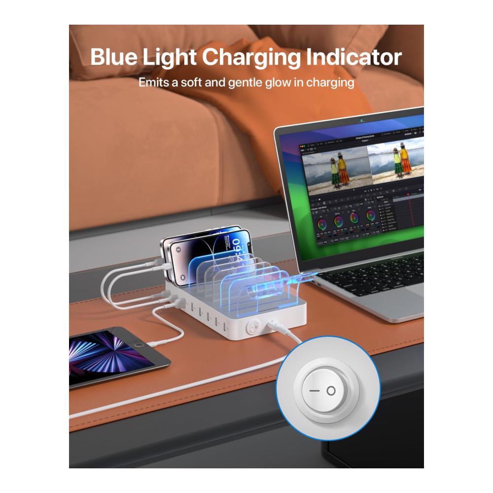 SooPii Ladestation für mehrere Geräte, 50W 6-Port Multi-USB-Ladestation mit 2-in-1 i-Watch-Ladeha...