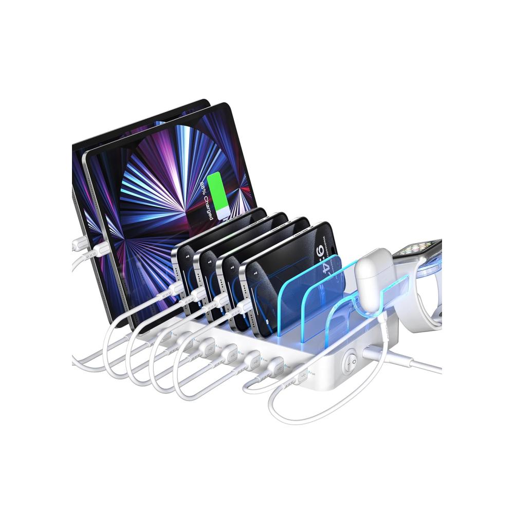 Ladestation für mehrere Geräte, 70-W-Ladestation mit 7 Anschlüssen und 30-W-PD-Anschluss für Mobi...