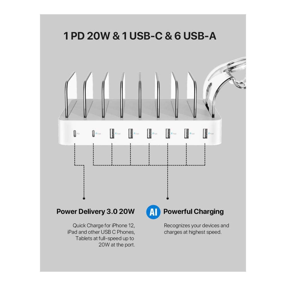 2. SooPii USB-C-Ladestation mit Zwei 20-W-PD-Anschlüssen, 6-Port-Ladestation für mehrere Telefone, T...