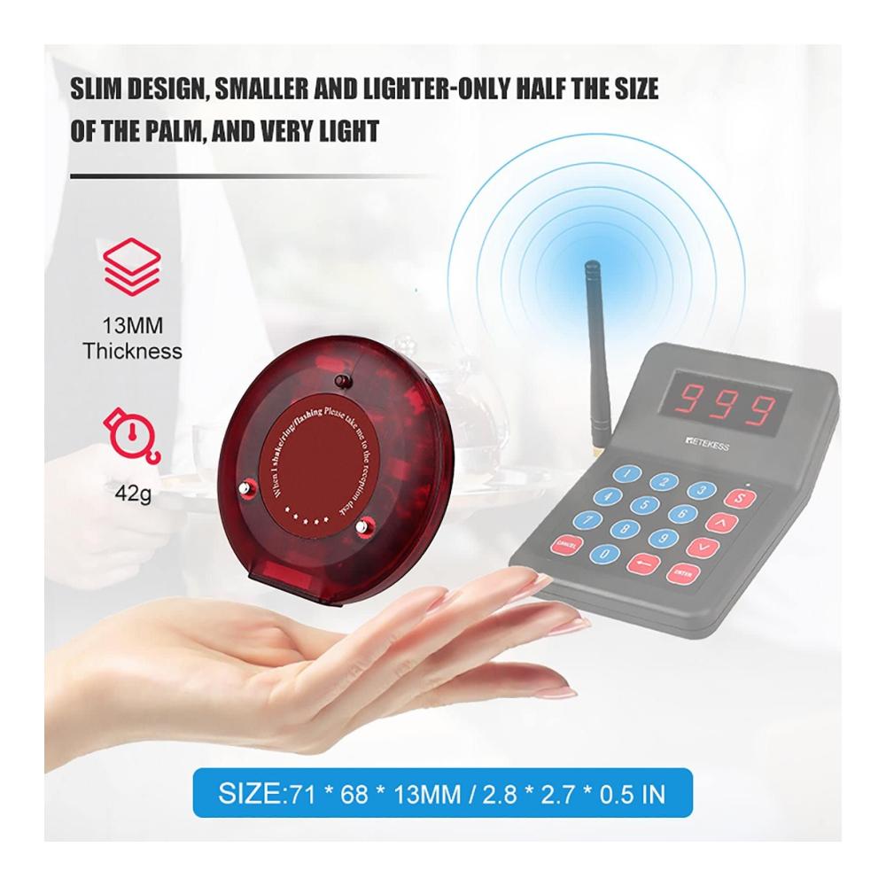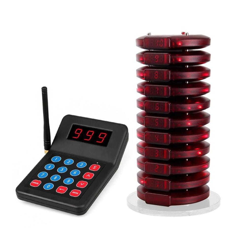 【GROSSE KAPAZITÄT】 Das drahtlose Paging-System enthält 1 Tastatursender und 10 Pager; ideal für große Restaurants; Bis zu 998 Pager können hinzugefügt werden, wenn das Unternehmen wächst