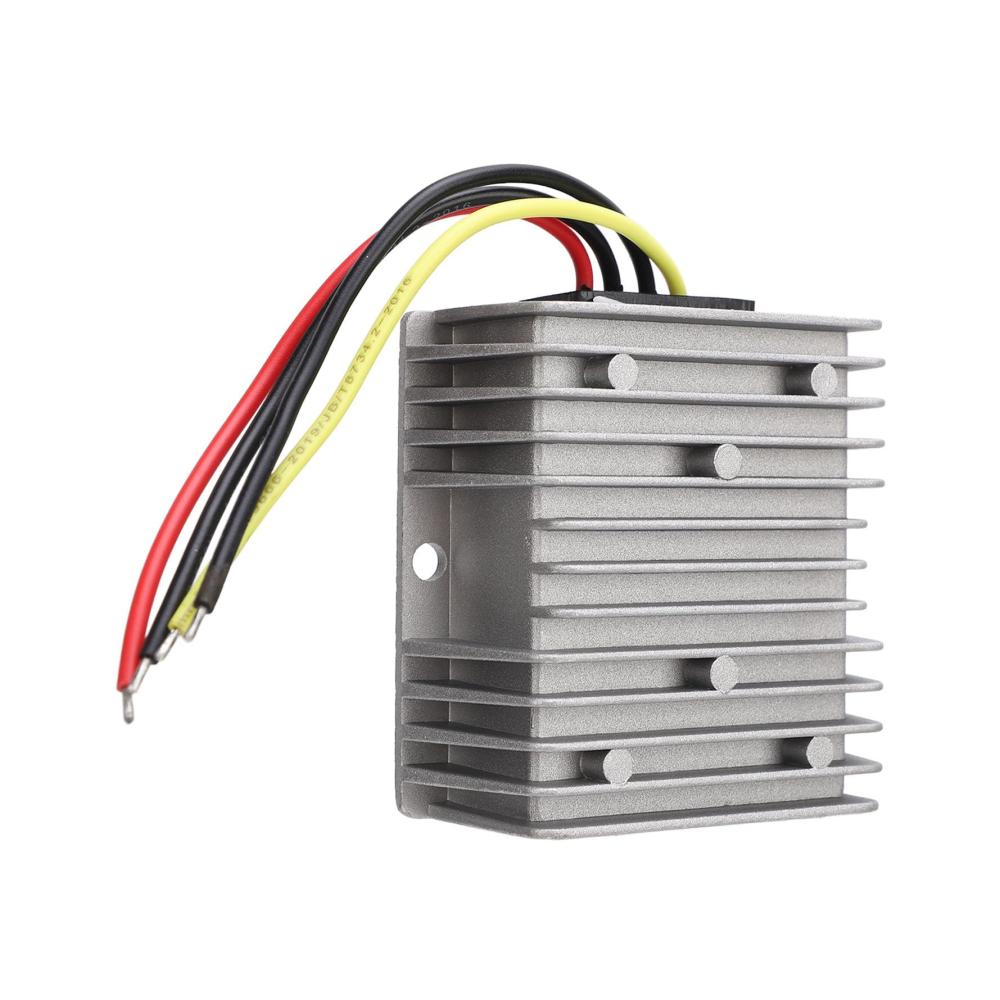 WASSERDICHTES GEHÄUSE: Mit einem vollständig versiegelten, wasserdichten IP67-Gehäuse, das als Kühlkörper fungiert, ist der Abwärtstransformator nicht nur langlebig, sondern auch stoß- und staubdicht und gewährleistet so einen dauerhaften Einsatz in verschiedenen Umgebungen.