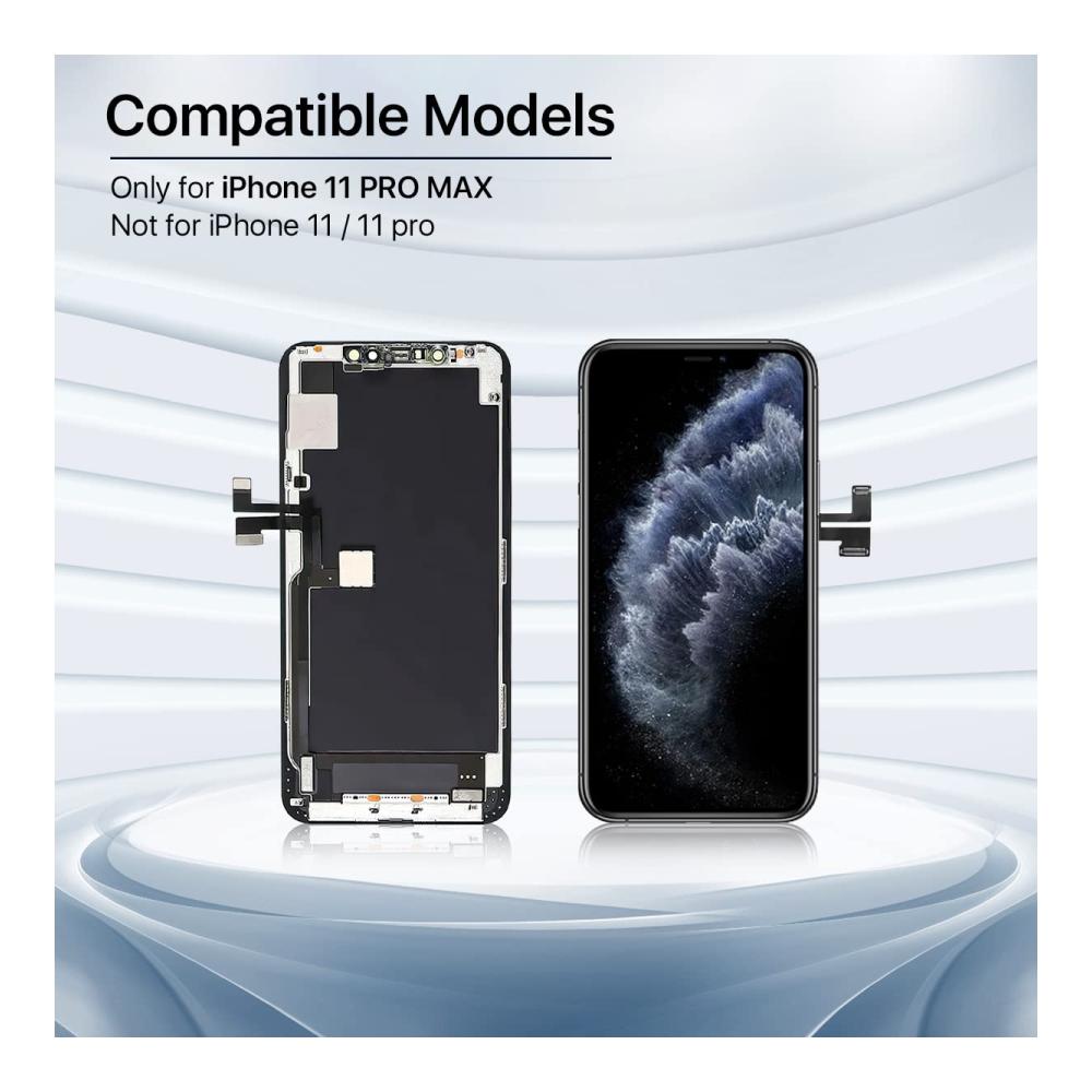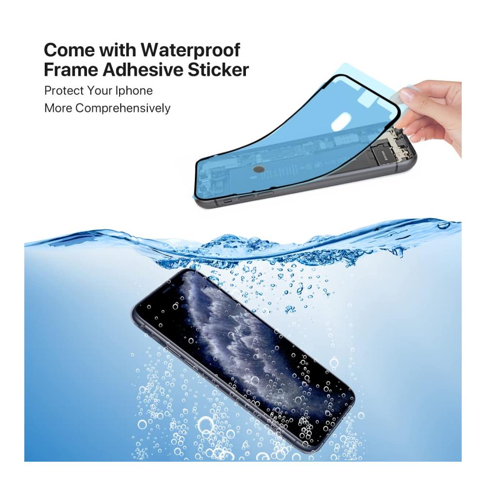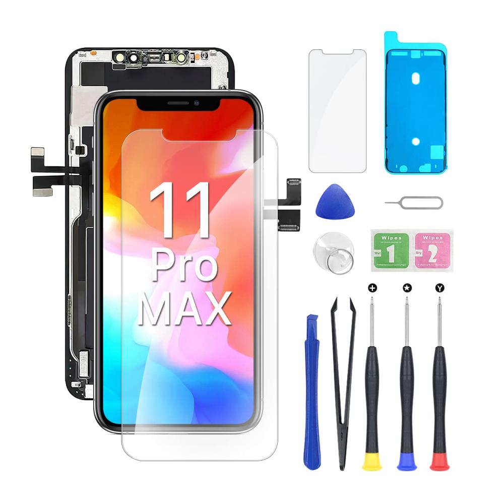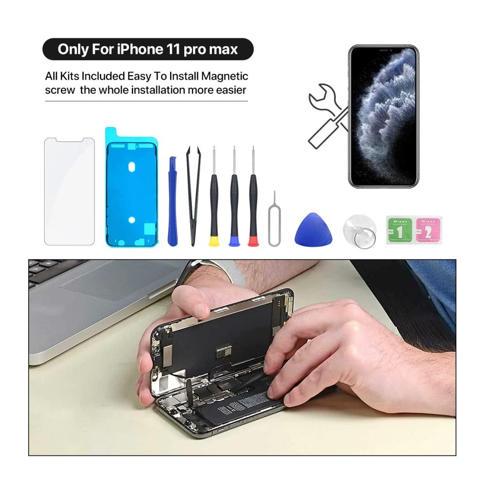 Package includes: 1 compatible iPhone 11 Pro Max display 1 screen protector 1 waterproof frame adhesive sticker 1 repair tool kit. No need to spend money on additional accessories. Replace the display quickly and easily
