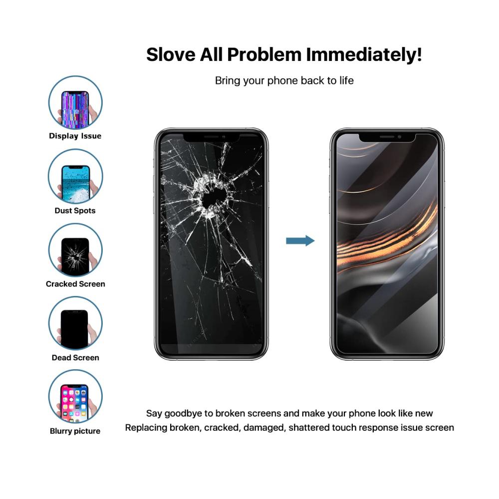 Quality assurance: All iPhone 11 Pro Max display replacement sets are strictly tested for double QC before shipping and are 100% in good condition. The screen is sensitive, please be careful when installing. If you have any problem, please feel free to contact us.