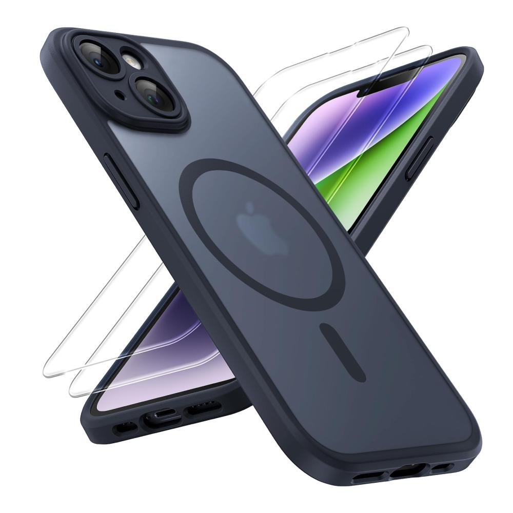 Enthaltene Komponenten: Magnetisch Hülle für iPhone 14, 2 Stück HD Schutzglas, modische Aufkleber, Installationspaket