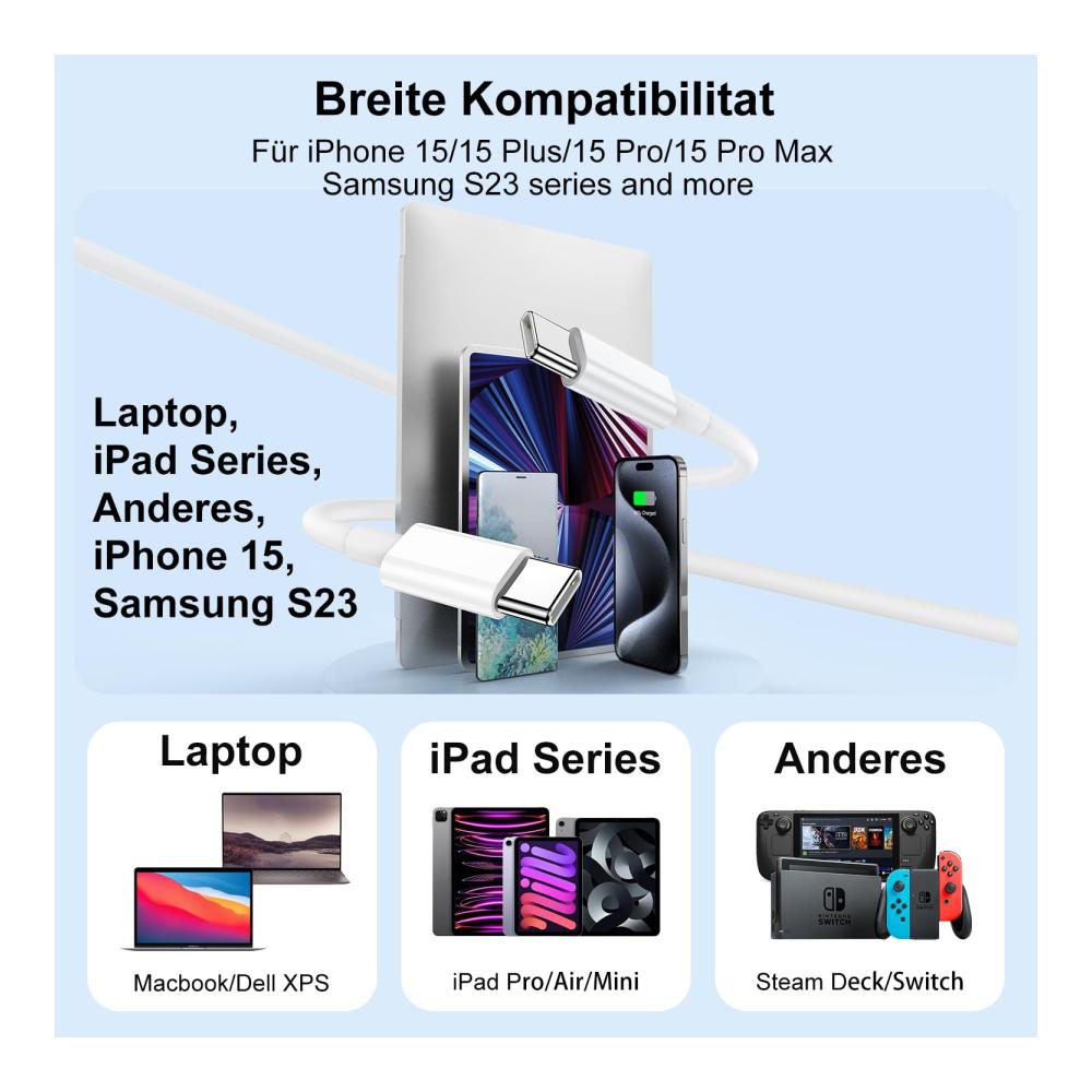 Be the first to review “iPhone 15 Pro Ladegerät | USB C Netzteil & Kabel | Schnellladegerät für iPhone 15 Plus/Pro Max iPad Pro/Air 5 MacBook | 2M USB C auf C Ladekabel | Kompatibel mit Samsung | Premium Netzteile” Antworten abbrechen
