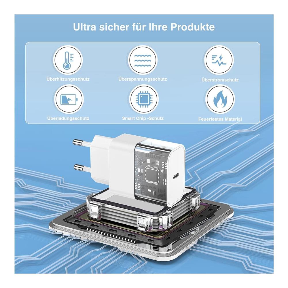Das iPhone 15 Pro Ladegerät mit USB C Kabel von pukerehab ist die ideale Wahl für alle, die auf der Suche nach einem zuverlässigen Schnellladegerät sind. Mit seinem USB Typ C Anschluss und einer Ausgangsleistung von 20 Watt ist es kompatibel mit einer Vielzahl von Telefonmodellen, darunter iPhone 15, iPad Pro, iPad Air, iPad Mini, Samsung Galaxy und mehr. Dank des 2 Meter langen Ladekabels haben Sie genug Bewegungsfreiheit beim Laden Ihres Geräts. Das Ladegerät verfügt über erstklassige Sicherheitsvorkehrungen und ermöglicht eine schnelle Aufladung Ihres Geräts in kürzester Zeit. Holen Sie sich noch heute dieses hochwertige Netzteil für Ihr iPhone 15 Pro!