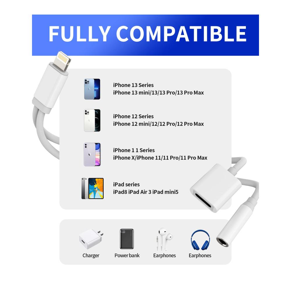 Unser iPhone Schnellladegerät(2in1) ermöglicht Ihnen, Kopfhörer anzuschließen und gleichzeitig aufzuladen. Mit Lightning Klinke und Apple MFI Zertifizierung ist es kompatibel mit verschiedenen iPhone-Modellen. Genießen Sie die Flexibilität und Bequemlichkeit dieses Adapters für Ihr tägliches Leben.