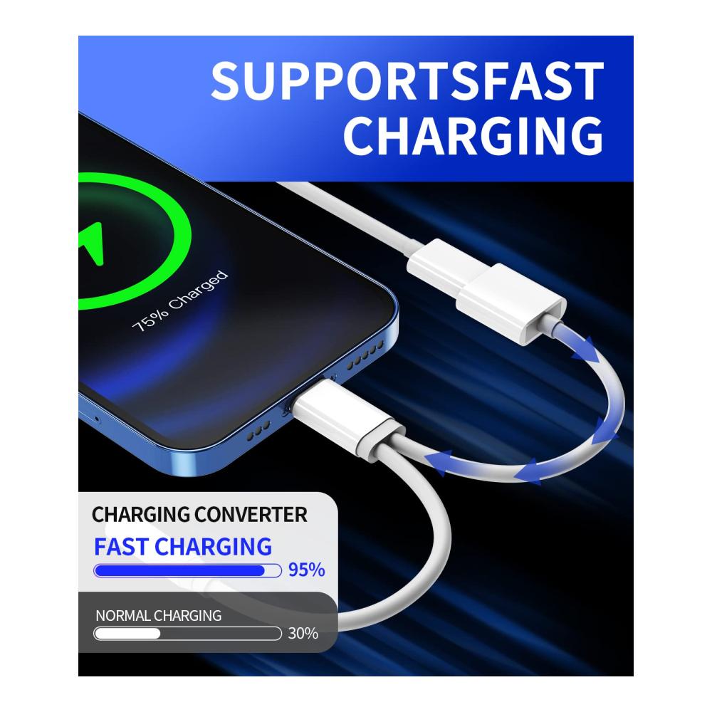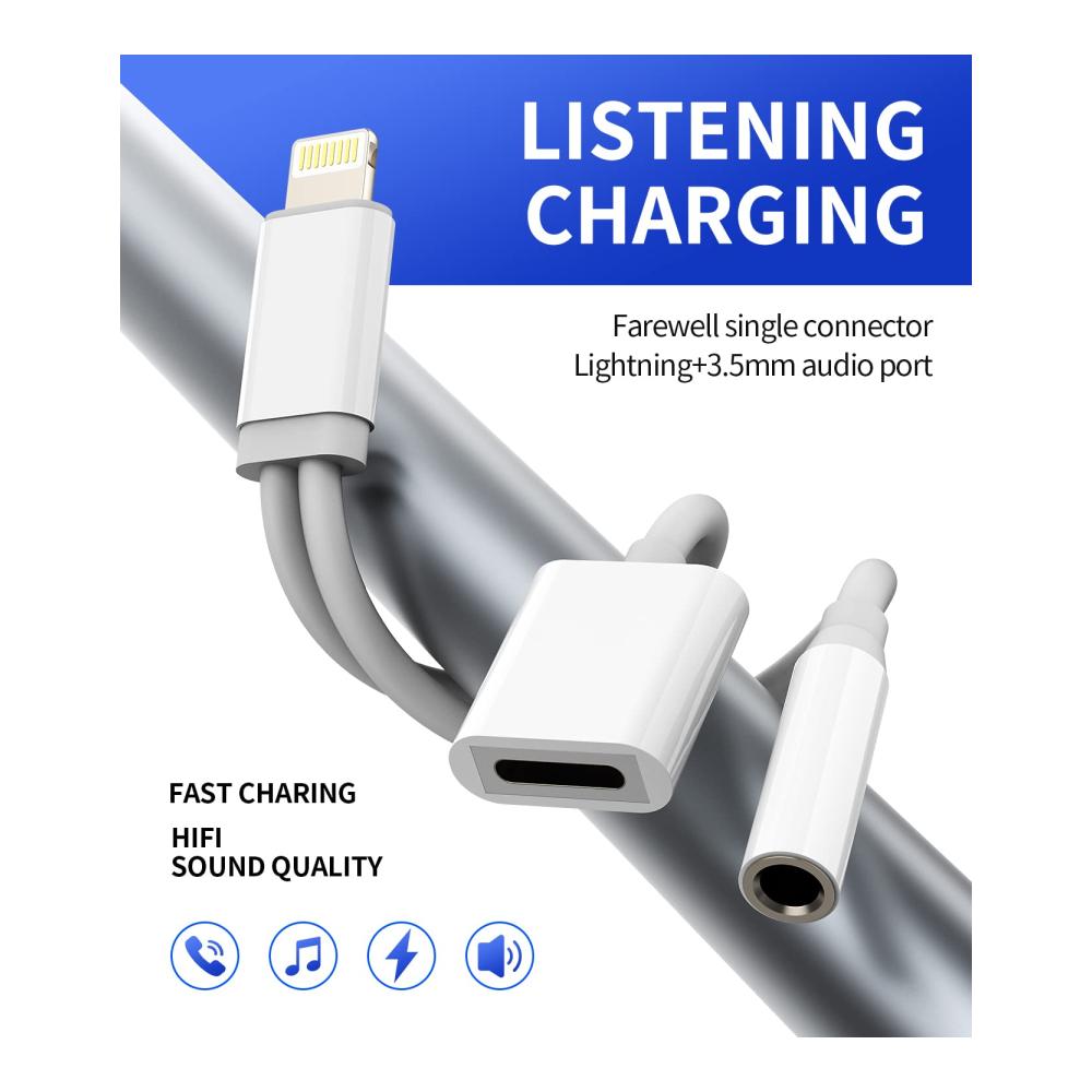 【2 in 1 Multifunktional】Unser Kopfhöreradapter verfügt über einen Audioanschluss Ladeanschluss, damit Sie den Spaß am Musikhören während des Ladevorgangs genießen können. 2,1 A Ladegeschwindigkeit um das 1,5-fache erhöhen und 30 % Ladezeit sparen. (Bitte beachten Sie: Dieser Adapter unterstützt keine Telefonanrufe.)