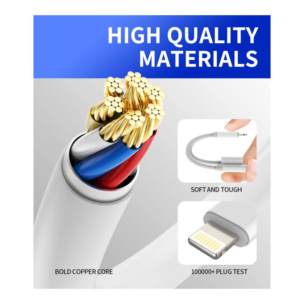【Erweiterte Klangqualität】Der iPhone-Kopfhörer und Ladeadapter verwendet 100 % Kupferkern, unterstützt bis zu 64 Bit / 192 kHz Audioausgabe, bietet High-Fidelity und ein verlustfreies Audioerlebnis für Ihre Unterhaltung.
