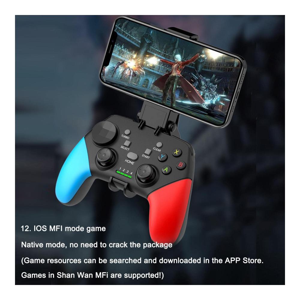 - Beschreibung: Das kabellose Gamepad unterstützt Aktion, Rennen, Kämpfe, Schießen, Leichtathletikspiele usw. Es verfügt über einen eingebauten 600mAh Lithium-Akku, der nach vollständiger Aufladung mehr als 8 Stunden halten kann. Die Übertragung des mobilen Spiel-Controllers kann 10 Meter Fernbetrieb und Kontrolle unterstützen. Der Handy-Game-Controller verfügt über eingebaute unabhängige Dual-Vibrationsmotoren. Lieferumfang: 1 x Gamepad, 1 x Halterung, 1 x Ladekabel, 1 x Bedienungsanleitung (evtl. nicht in deutscher Sprache).