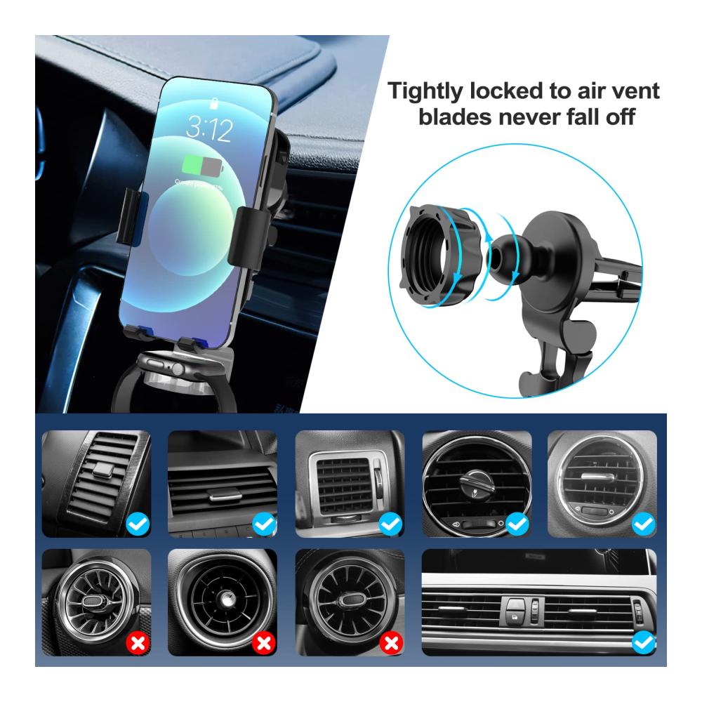 Flexible Installationsmethoden: Dieses Autoladegerät bietet zwei Installationsmethoden: Saugnapfhalterung und Lüftungsclip, und Benutzer können die geeignete Installationsmethode entsprechend ihren Anforderungen auswählen. Starke Saugnapfbasis mit Haftgel und rutschfesten Stabilisatoren, hält die Halterung fest auf dem Armaturenbrett, ohne zu wackeln.