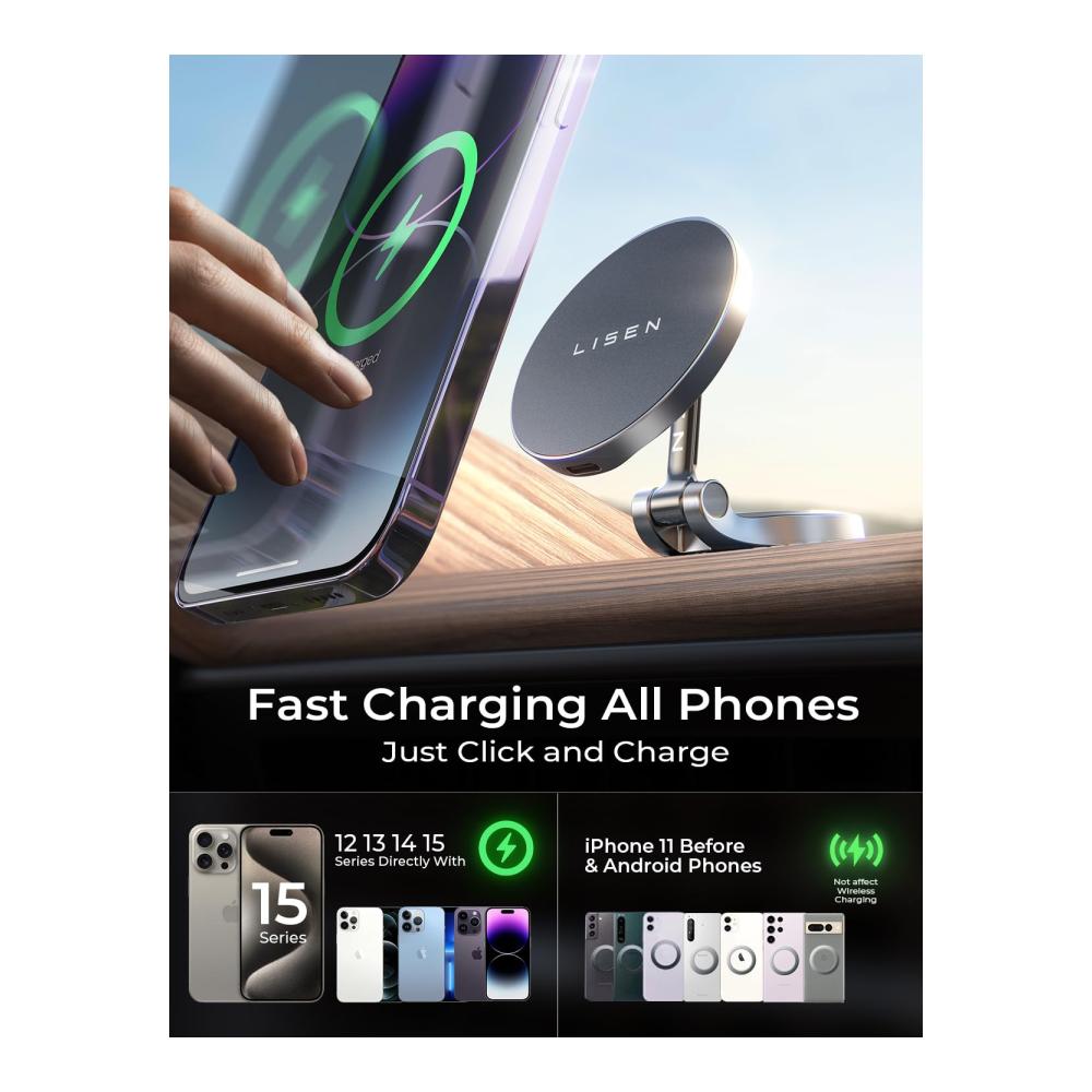 Freigabe mit einem Klick: Erleben Sie eine problemlose Telefonverwaltung mit unserer One-Click-Release-Funktion. Keine komplexe Installation erforderlich, damit Sie sich auf die Straße konzentrieren können. Unser LISEN magsafe 3 handyhalterung auto verfügt über eine Ladefunktion und ist mit iPhone 15/14/13/12 Mobiltelefonen kompatibel, was ein schnelles und effizientes Aufladen gewährleistet.