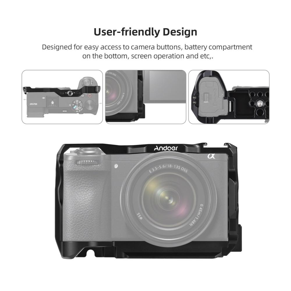 【Robuster Kamerakäfig】 Dieser Kamerakäfig aus einer robusten Aluminiumlegierung, die oxidationsbeständig und unglaublich langlebig ist, bietet hervorragenden Schutz für die Sony A6700-Kamera.