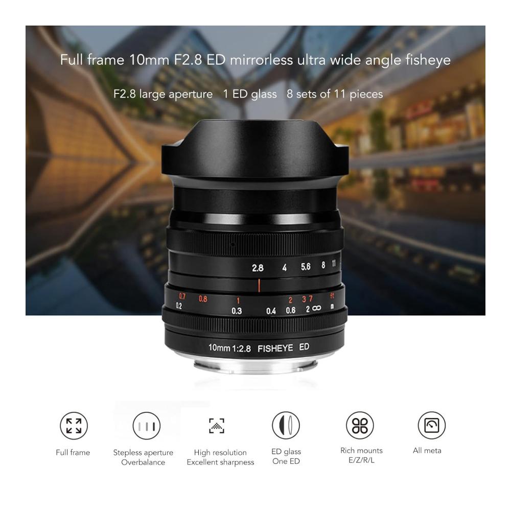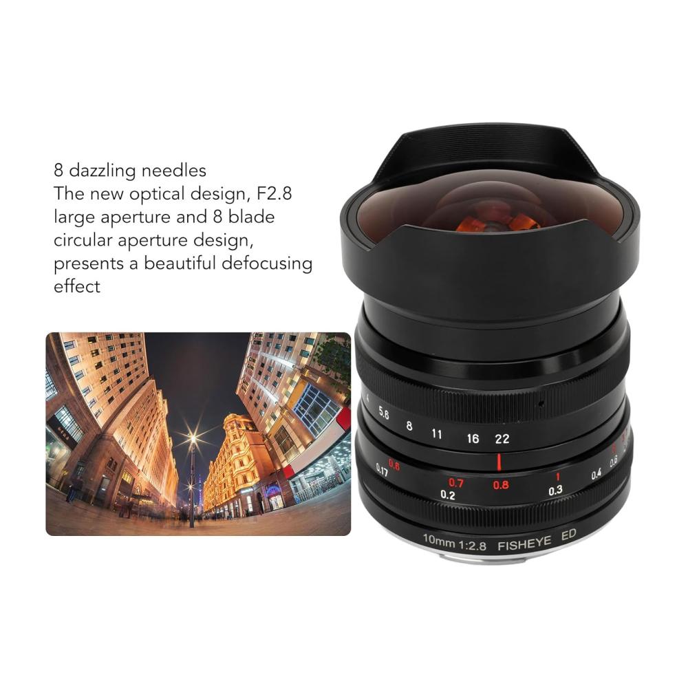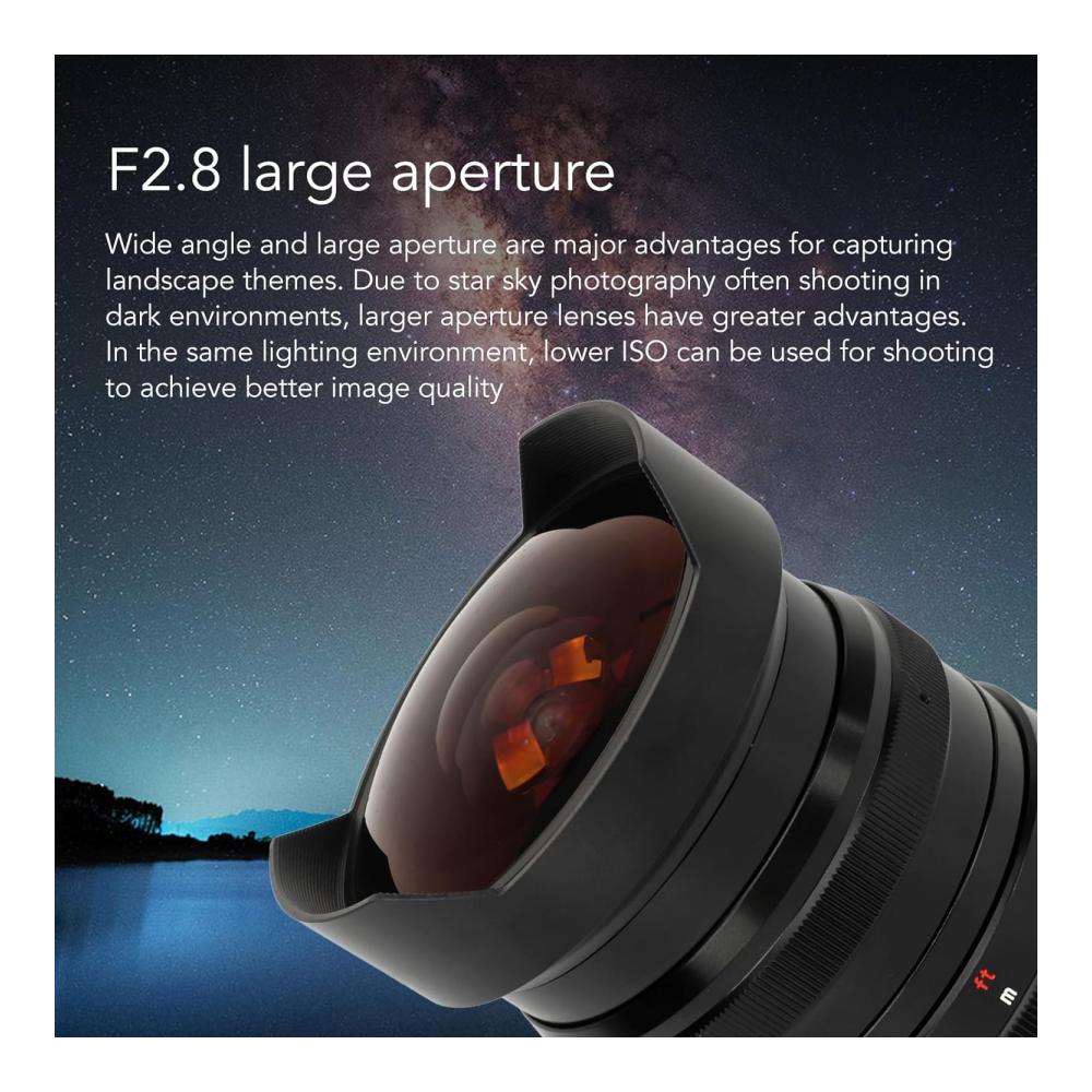 1. Einfache Erstellung von Panorama-VR: Wenn Sie 360-Grad-Panoramafotos aufnehmen möchten, ist ein Fischaugenobjektiv eine unverzichtbare Fotoausrüstung für Panoramafotografen. Der Grund, warum Sie sich für ein Fischaugenobjektiv für 360-Grad-Panoramaaufnahmen entscheiden, liegt hauptsächlich darin, dass es beim Aufnehmen eines einzelnen Fotos eine größere visuelle Wirkung hat und dadurch die Anzahl der Fotos reduziert, die zu 360-Grad-Panoramafotos zusammengefügt werden müssen. 2. F2,8 Große Blende: Weitwinkel und große Blende sind große Vorteile bei der von Landschaftsmotiven. Da die Sternenhimmelfotografie häufig in dunklen Umgebungen fotografiert, ist der Vorteil des Objektivs umso größer, je größer die Blende. In der gleichen Lichtumgebung kann für die ein niedrigerer ISO-Wert verwendet werden, um eine bessere Bildqualität zu erzielen.3. Fischaugenobjektive sind auch Ultraweitwinkelobjektive: Während der Nachbearbeitung kann LR- oder PS-Software verwendet werden, um Verzerrungen durch Konfigurationsdateien und Nachkorrektur zu korrigieren, was zu einem breiteren Bild als bei Ultraweitwinkelobjektiven führt.4. Breite Kompatibilität und 8 umwerfende Nadeln: Kompatibel mit R, RP, R5 und anderen Modellen. Neues optisches Design, große F2,8-Blende und 8-Lamellen-Zirkularblende sorgen für einen schönen Defokussierungseffekt.Spezifikation:Artikeltyp: 10 mm F2,8-Fisheye-ObjektivMaterial: Metall, optisches GlasGewicht: ca. 926g / 32,7ozBrennweite: Ca. 10 mm / 0,4 ZollBlendenlamellen: 8 LamellenMindestfokusabstand: Ca. 0,17 m / 6,7 ZollSensorformat: VollformatOptische Struktur: 8 Gruppen 11 ElementeObjektivstabilisierung: Ohne StabilisierungMaximale Blende: F2,8Minimale Blende : F22Betrachtungswinkel: 178 GradFokusmodus: Manueller FokusBlendenring: Stufenlose BlendePaketliste:1 x Objektiv2 x Objektivdeckel1 x