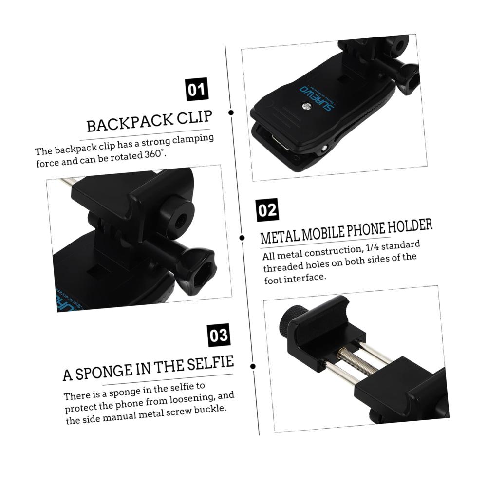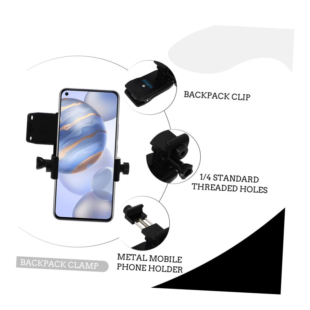Dank des rutschfesten Designs und der 360-Grad-Drehfunktion können Sie Ihr Telefon sicher an Ihrem Rucksack befestigen und aus verschiedenen Winkeln fotografieren. Der schwarze Rucksackgurtclip sorgt für Stabilität, während der Metallhalter das Telefon sicher hält.