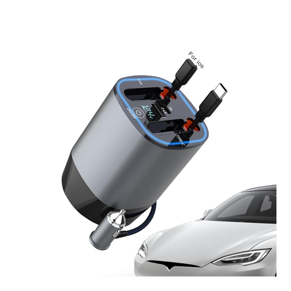 ➧Einfaches Aufladen: Verbessern Sie Ihr Erlebnis mit dem schnellen Autoladegerät. Ziehen Sie einfach das Kabel innerhalb von 80 cm heraus und stecken Sie es ein. Das automatische Einzugs- und Verriegelungssystem des Ladegeräts sorgt für Ordnung und Ordnung. Darüber hinaus können Sie die Kabellänge dank des flexiblen und skalierbaren Designs ganz einfach anpassen, um optimalen Komfort zu gewährleisten.