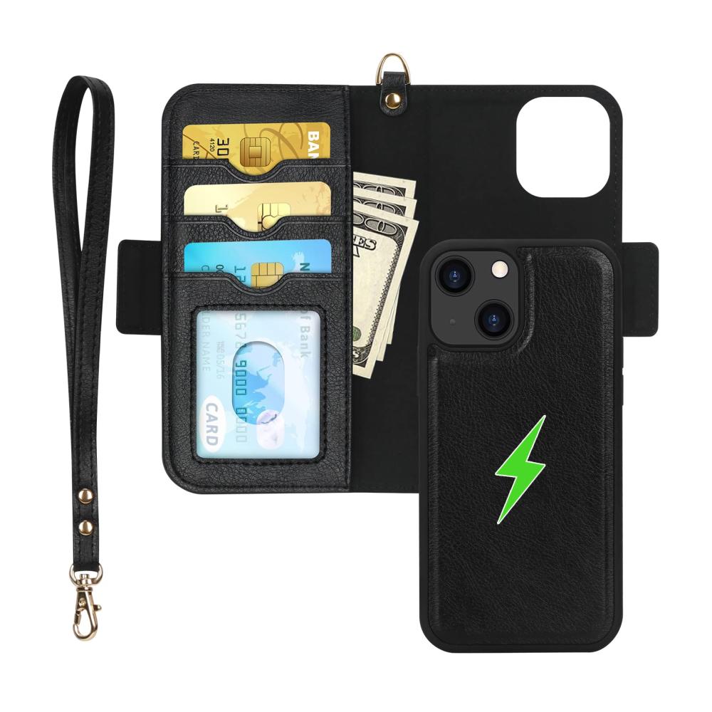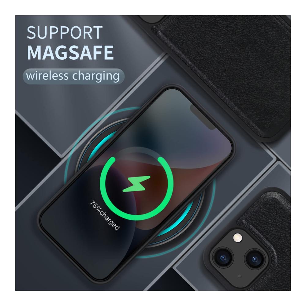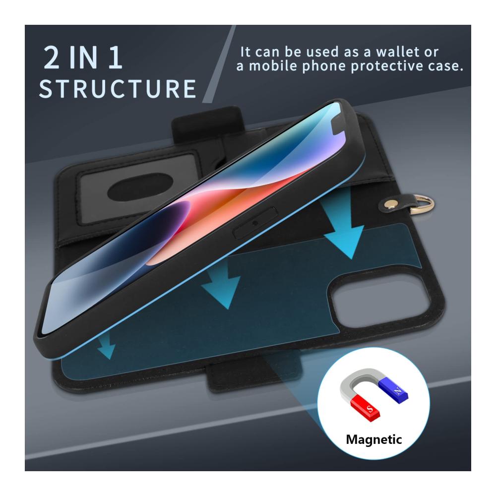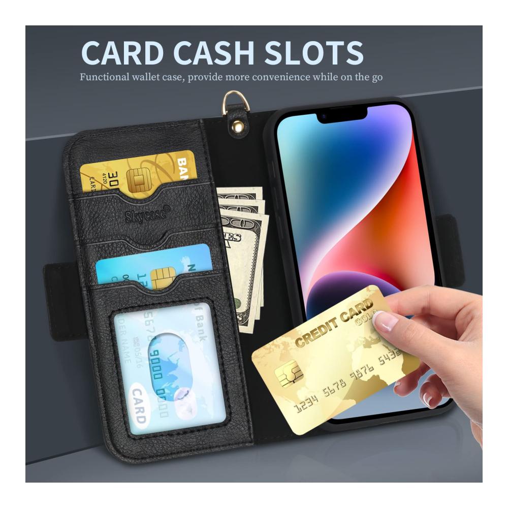 Die Skycase Klapphülle für das iPhone 14 6.1 bietet stilvollen Schutz in Schwarz. Aus hochwertigem Leder gefertigt, verfügt sie über eine magnetische abnehmbare Struktur und praktische Funktionen wie Standfunktion und kabelloses Laden. Kompatibel mit Magsafe Akkus für kontinuierliche Energieversorgung. Mit integrierten Kartenfächern und einem Geldfach. Die abnehmbare Handschlaufe sorgt für zusätzliche Sicherheit. Ideal für anspruchsvolle Nutzer. Erleben Sie Funktionalität und Eleganz mit dieser Klapphülle.