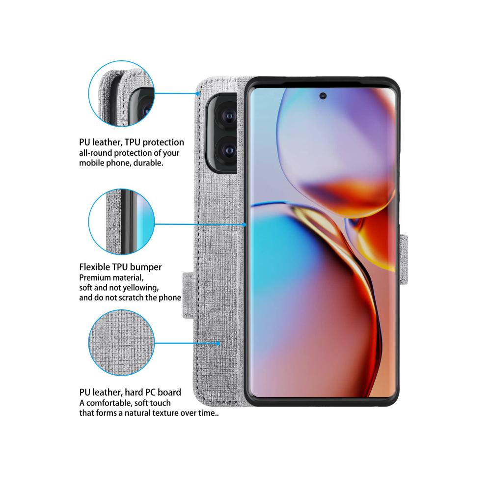 Schützen Sie Ihr Motorola Edge 40 Pro mit dieser eleganten Klapphülle von Foluu. Hergestellt aus hochwertigem TPU und Canvas, bietet sie hervorragenden Schutz und vereinfachtes, schlankes Design. Die Hülle verfügt über 3 Kartenfächer und 1 Geldfach für maximale Funktionalität. Mit magnetischem Verschluss und einstellbarem Ständer. Bestellen Sie jetzt und genießen Sie stilvollen Schutz für Ihr Gerät!