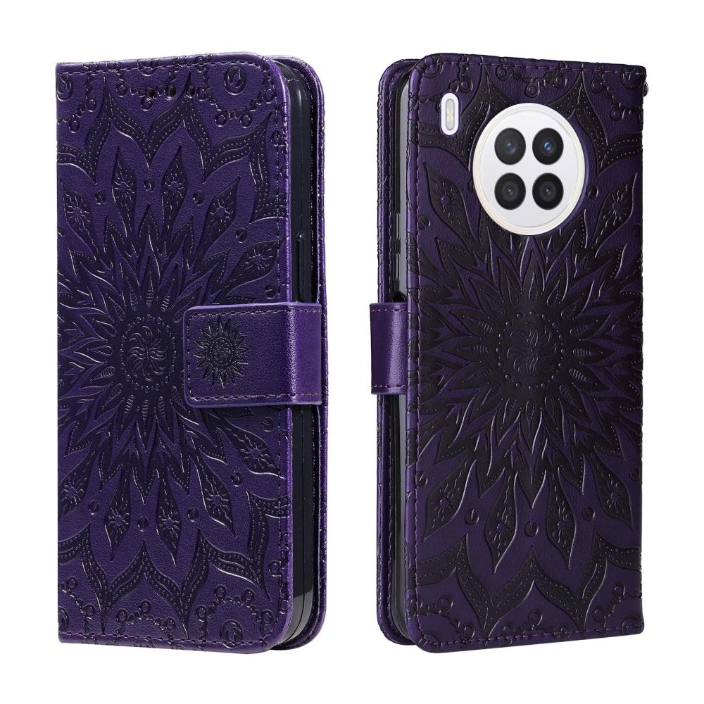 Flip-Cases für Ihr Huawei Nova 8i – Stilvoller Schutz in lila Sonnenblumen-Optik