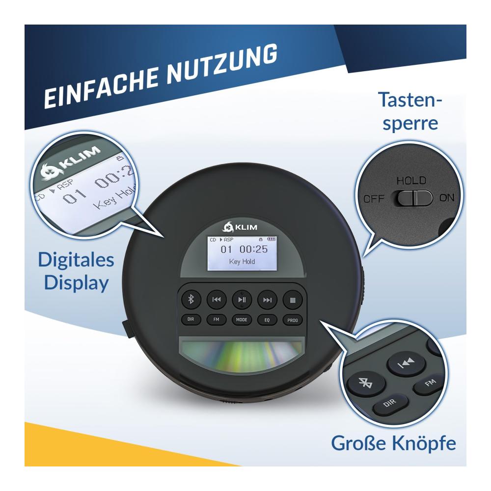 KLIM Nomad – Tragbarer CD-Player Discman mit langlebigem Akku