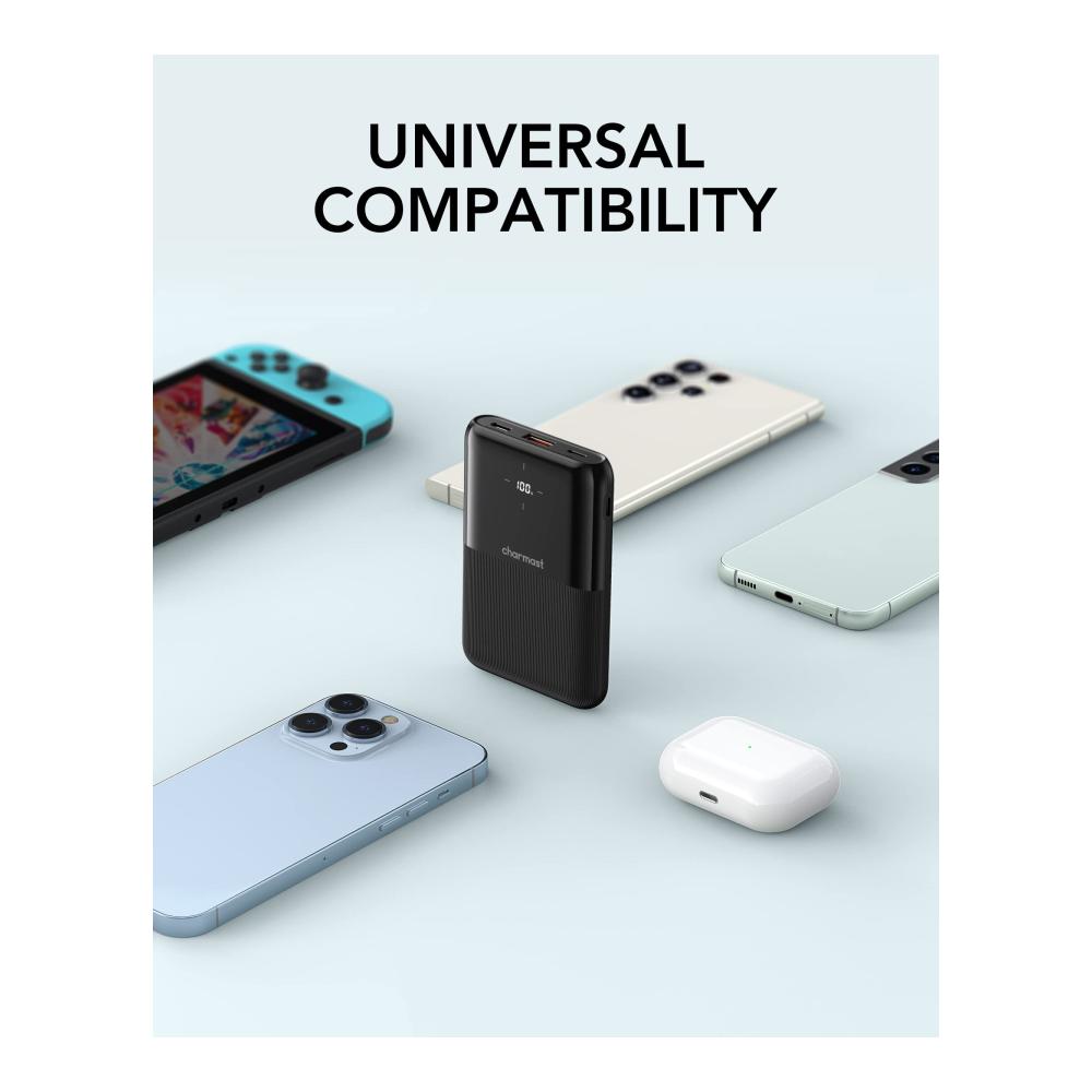 Die Mini Power Bank 10000mAh von Charmast ist eine kompakte und leistungsstarke Lösung für unterwegs. Mit USB Typ-C Anschluss und schwarzem Design passt sie perfekt zu Ihren Geräten. Mit 10000 mAh Kapazität und 5 Volt Spannung haben Sie genug Energie für den ganzen Tag.