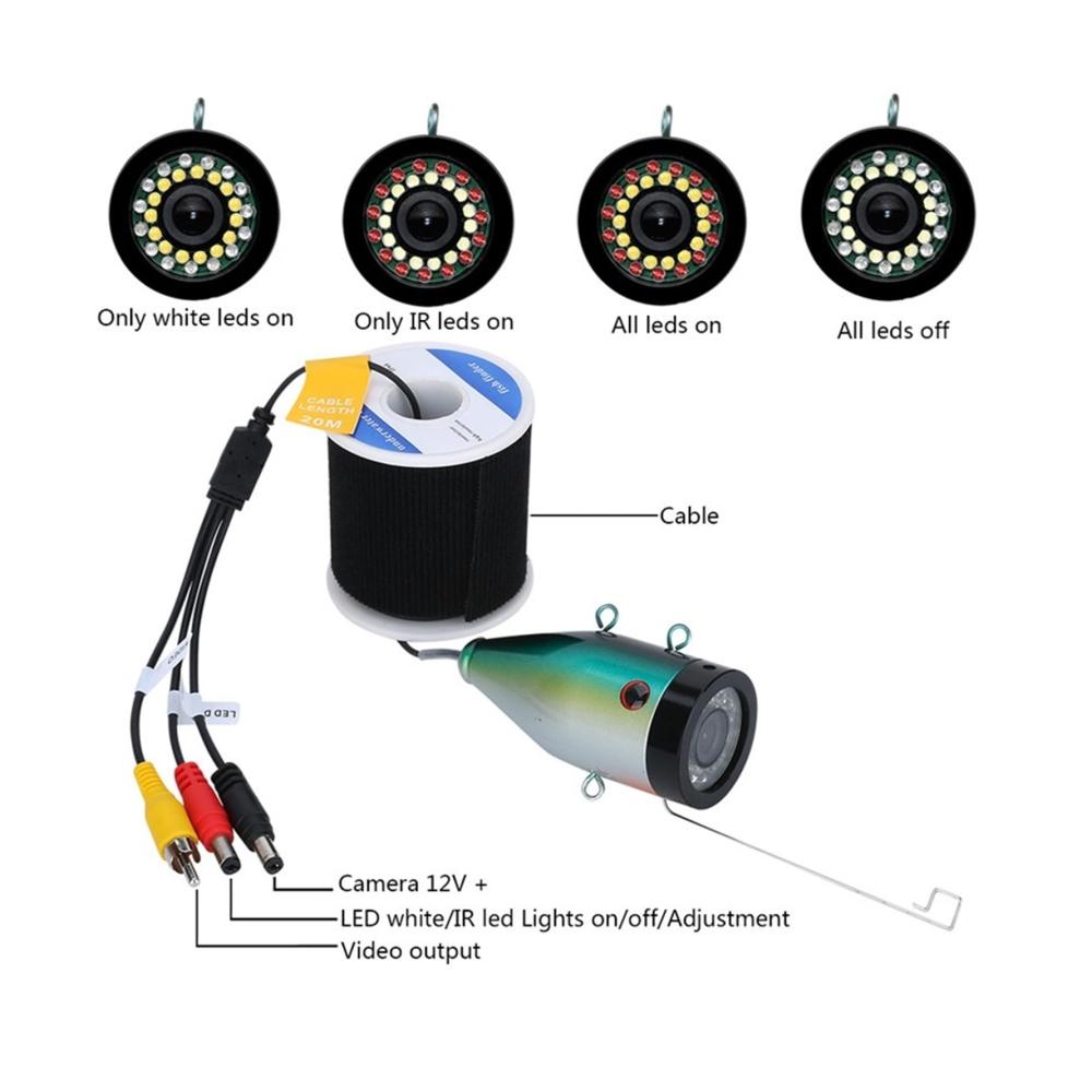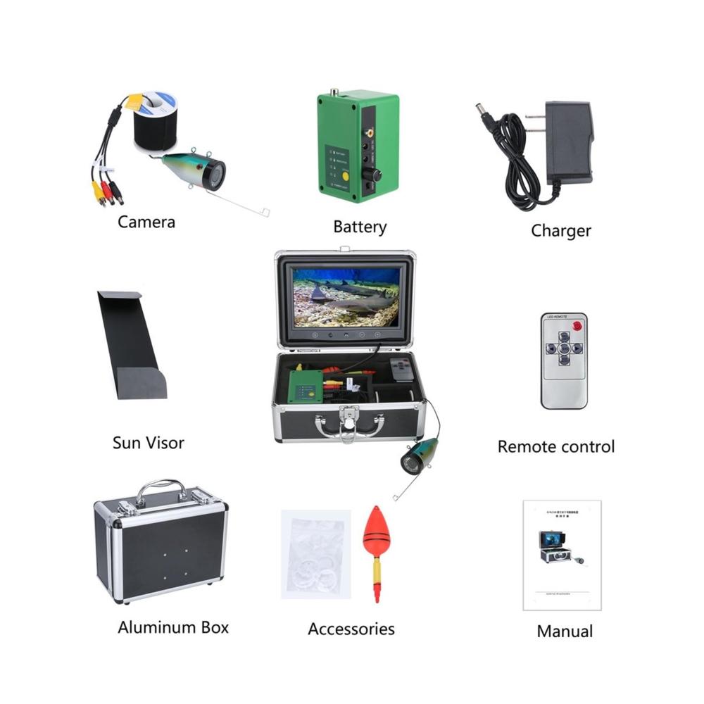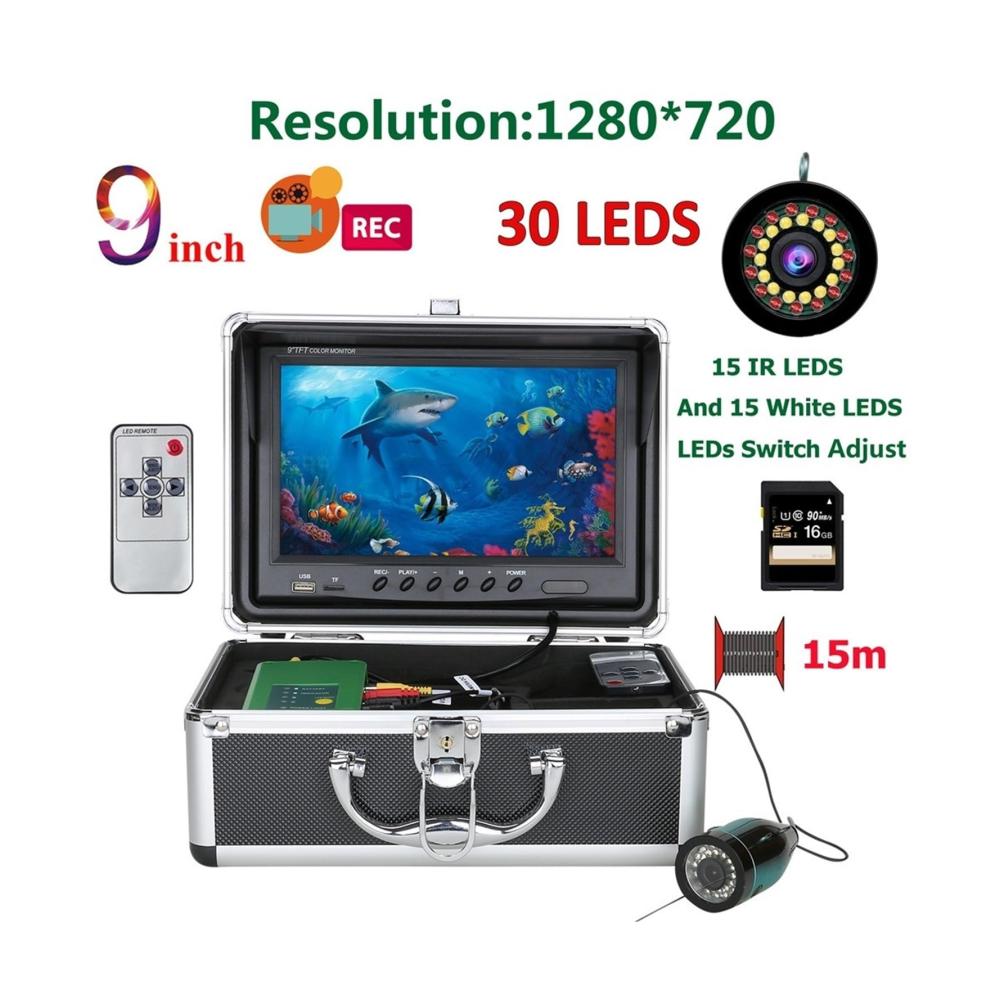 9 Zoll DVR Fischfinder Unterwasserfischen 1080P Kamera HD 1280*720 Bildschirm 15 Stück weiße LEDs 15 Stück Infrarotlampe 15m Kamera für Angeln 16GProdukteinführung:Dieses Produkt, das Sie gerade ansehen, ist das neueste, beliebte, modische, gut aussehende und praktische Unterwasser-Videokamerasystem. Es verfügt nicht nur über einen großen Farbbildschirm, sondern auch über eine hochauflösende Kamera mit AHD 1080P. 15 weiße LEDs, 15 Infrarotlampen mit hoher Intensität. 4 verschiedene LED-Status: Weiße LED an, IR-LED an, alle LEDs an, alle LEDs aus. Außerdem kann die LED-Helligkeit angepasst werden, um eine bessere Bildqualität zu erzielen. Dieses Unterwasser-Monitorsystem verfügt auch über die DVR-Funktion. Außerdem wird dieser Artikel mit einer 16-GB-SD-Karte geliefert und dieses System unterstützt maximal 64-GB-SD-KartenAnwendungsgebiete: Überwachung der Aquakultur, Unterwassererkundung, Eis-/Seefischen, Schwimmen/Tauchen/Schnorcheln sind verfügbar.Merkmale:1,9-Zoll-IPS-LCD-Farb-DVR-Funktionsmonitor mit Sonnenblende für helle Umgebungen im Freien2. Klare Bilder werden mit der Angelkamera AHD 1080P mit 2 Millionen Pixeln angezeigt.3. Wasserdicht, 100 Grad Fischmodell aus Aluminiumlegierung4. Kältebeständige, wasserdichte und zugfeste Kabel5. Die verfügbare Länge des Kamera-Verlängerungskabels: 15 m6. 15 Stück weiße LEDs, 15 Stück Infrarotlampen, hohe Intensität.7. Die kontinuierliche Nutzungsdauer des Akkus beträgt bis zu 8 Stunden, Akkustatus.8. 4 verschiedene LED-Status: Weiße LED an, IR-LED an, alle LED an, alle LED aus. Außerdem kann die LED-Helligkeit angepasst werden, um eine bessere Bildqualität zu erzielenAnzeigeDisplaygröße: 9 Zoll IPSBildschirmauflösung: 1280 * 720Eingangsspannung des Monitors: 12 V DCAuflösung der Videoaufzeichnung: 1280 x 720TF-Karte: Unterstützt maximal 64 GB SD-Karte.Kamera:Die Kamera kann horizontal und vertikal installi