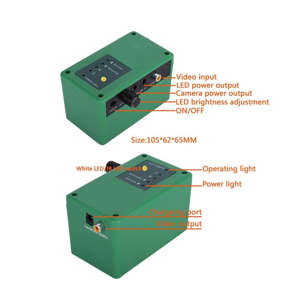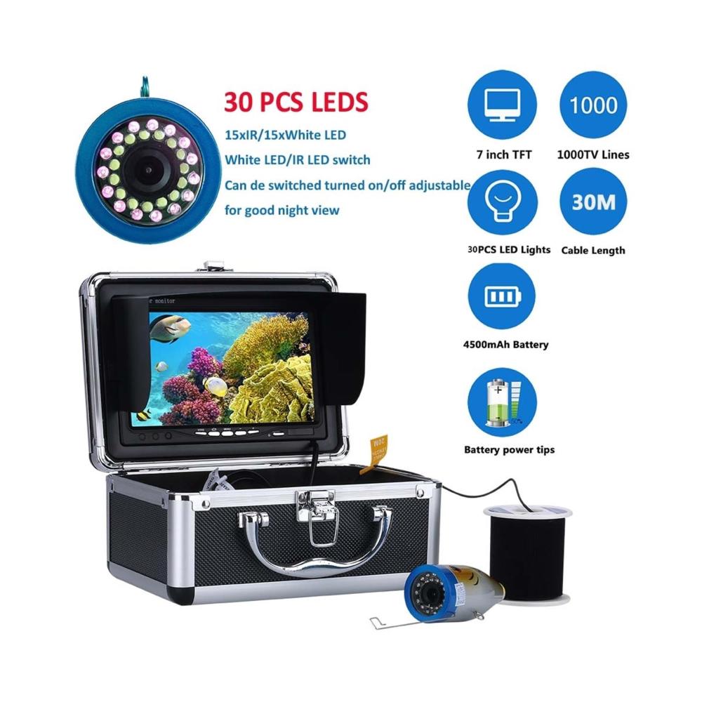Beschreibung der Angelkamera:Dieses Produkt, das Sie gerade ansehen, ist das neueste, beliebte, modische, gut aussehende und praktische Unterwasser-Videokamerasystem. Es verfügt nicht nur über einen großen Farbbildschirm, sondern auch über eine hochauflösende Kamera mit HD 1000-TV-Linien. 15 weiße LEDs, 15 Infrarotlampen mit hoher Intensität. 4 verschiedene LED-Status: Weiße LED an, IR-LED an, alle LEDs an, alle LEDs aus. Außerdem kann die LED-Helligkeit angepasst werden, um eine bessere Bildqualität zu erzielenAnwendungsgebiete: Überwachung der Aquakultur, Unterwassererkundung, Eis-/Seeangeln, Schwimmen/Tauchen/Schnorcheln sind verfügbar.Merkmale:1,7-Zoll-TFT-Farbmonitor mit Sonnenblende für helle Umgebungen im Freien2. Klare Bilder werden mit der HD-Angelkamera mit 1000 TVL Megapixeln angezeigt.3. Wasserdicht, 90-Grad-Fischmodelldesign aus Aluminiumlegierung4. Kältebeständige, wasserdichte und zugfeste Kabel5. Die verfügbare Länge des Kamera-Verlängerungskabels: 15 m, 30 m, 50 m6. 15 Stück weiße LEDs, 15 Stück Infrarotlampen, hohe Intensität.7. Die kontinuierliche Nutzungsdauer des Akkus beträgt bis zu 8 Stunden, Akkustatus.8. 4 verschiedene LED-Status: Weiße LED an, IR-LED an, alle LED an, alle LED aus. Außerdem kann die LED-Helligkeit angepasst werden, um eine bessere Bildqualität zu erzielenAnzeige:Displaygröße: 7 ZollBildschirmauflösung: 480 * 960Eingangsspannung des Monitors: 12 V DCKamera:IP68 wasserdichtBetrachtungswinkel: 90 GradSichtweite (klares Wasser): 1-3 mNachtsicht: 15 weiße LEDs und 15 Infrarotlampen.Kamera: 1000TVL/AluminiumlegierungBatterie: 4500AHPower Box: BatteriestatusDie Nutzungsdauer des Akkus beträgt ca. 8 StundenKameragröße: Durchmesser 38,5 x 90 mmGröße der Aluminiumbox: (240 x 210 x 140 mm).Packungsinhalt:1 * Gehäuse und Monitor1 * Kamera und Kabel1* Batterie (Power Con