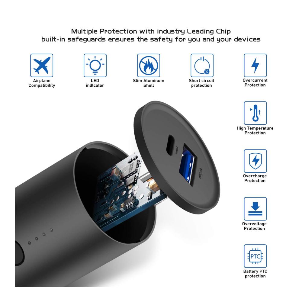 Intelligentes SchnellladenEingebaute Sicherheitsvorkehrungen schützen Ihre Geräte vor Überstrom, Überhitzung und Überladung.Unterstützt überladen,überentladen, Überspannung, Überstrom und Kurzschlussschutz, sicherer zu verwenden. | Kompaktes DesignDas leichte zylindrische zylindrische Design überschreitet nicht den Lippenstift, der perfekt für jede kleine Tasche, Jacke oder Hosentasche geeignet ist! | Universelle KompatibilitätBONAI Klein Powerbank funktioniert einwandfrei mit so gut wie allen Smartphones, Tablets und mehr. |