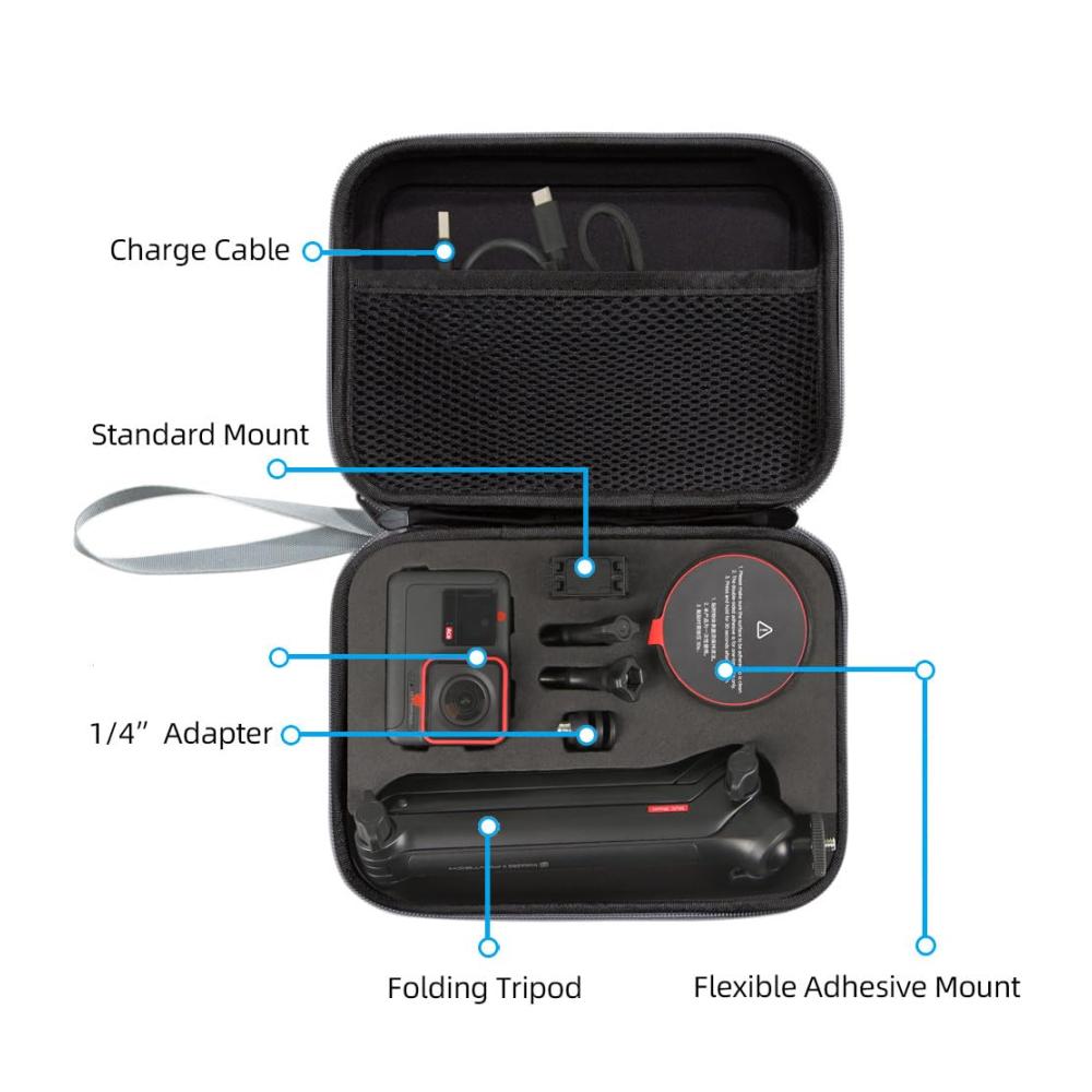 Transportieren Sie Ihre Insta360 Ace Pro/Ace sicher mit dieser grauen Tragetasche. Das stoßfeste Innenfutter und der stabile Körper bieten einen tiefen Schutz für Ihre Action-Kamera. Die präzise Passform und die Mesh-Zwischenlage für Zubehör machen diese Tasche ideal für unterwegs.