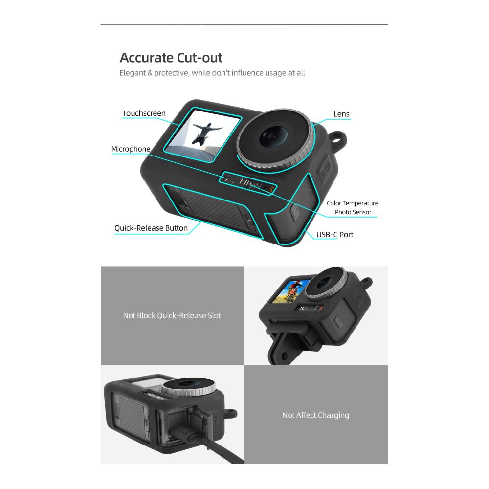 Schützen Sie Ihre Kompaktkamera mit Stil und Funktionalität. Unser kompatibles Cover Case für DJI OSMO Action 4/3 ist eine perfekte Ergänzung für Ihre Ausrüstung. Das robuste Silikonmaterial schützt Ihre Kamera zuverlässig vor Stößen und Kratzern, während das mitgelieferte Lanyard für bequemes Tragen sorgt. Die präzisen Aussparungen gewährleisten uneingeschränkten Zugriff auf alle Funktionen Ihrer Kamera. Mit der geprägten Tastentechnologie behalten Sie stets ein authentisches Bedienerlebnis. Erleben Sie ultimativen Schutz und Tragekomfort für Ihre Kompaktkamera unterwegs.