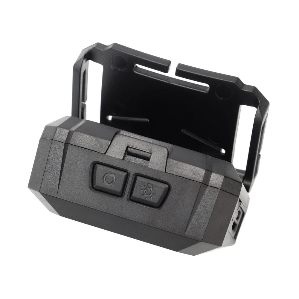 • [LED-Scheinwerfer und SOS-Modus] Schalten Sie den LED-Scheinwerfer einfach mit einem kurzen Druck ein und aktivieren Sie den SOS-Modus mit einem langen Druck auf die am DVR montierte Außenkamera.